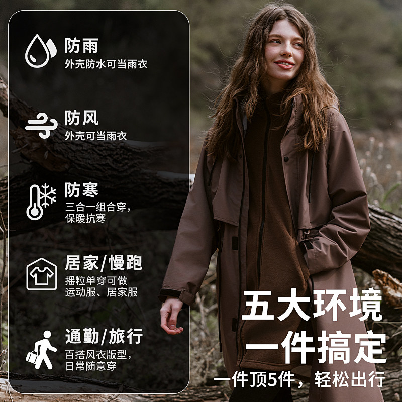 冲锋衣外套女款2025新款三合一中长款防风防水风衣外套男士冲锋衣
