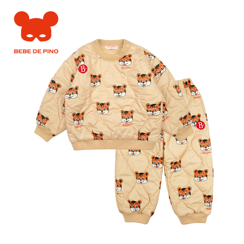 BEBEDEPINO贝贝品诺冬季男女宝中童满印虎纹舒适休闲运动绗缝套装