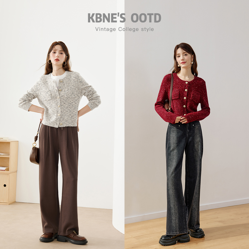 KBNE2025新款安可拉红羊毛针织衫外套开衫长袖上衣气质毛衣秋冬女