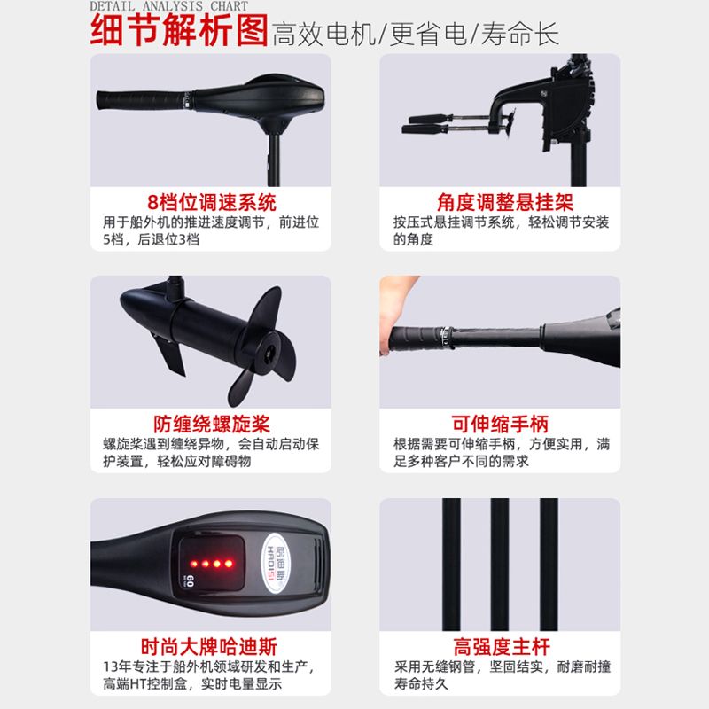 哈迪斯船用电动推进器12v橡皮艇电动马达螺旋桨挂浆小塑料船外机