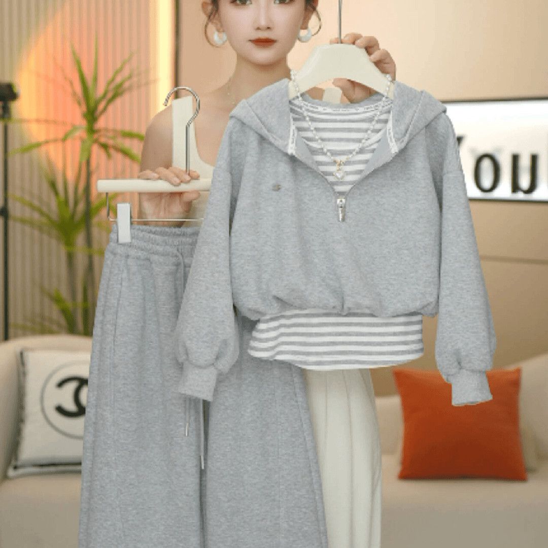 女童秋装套装2025新款春秋中大童女孩洋气连帽卫衣儿童运动两件套