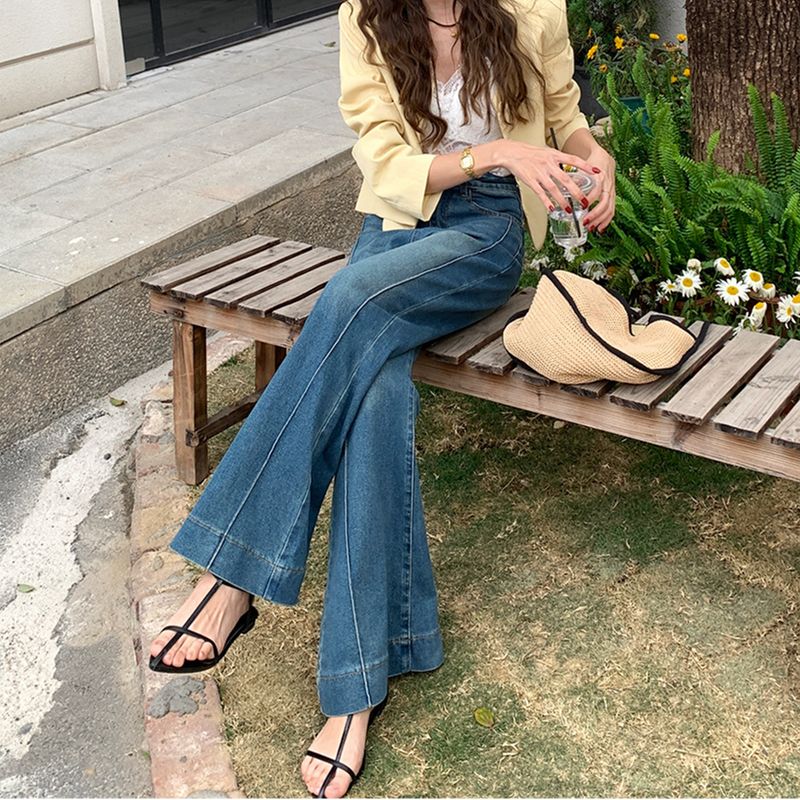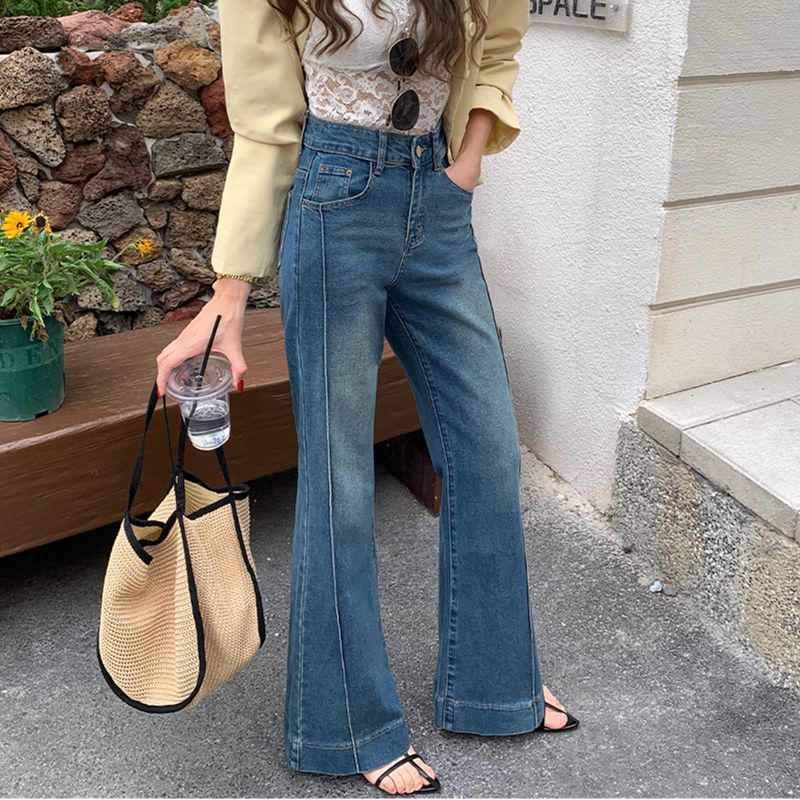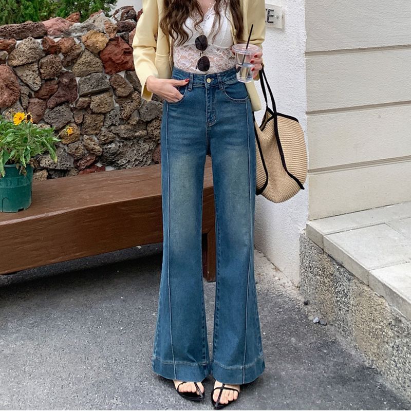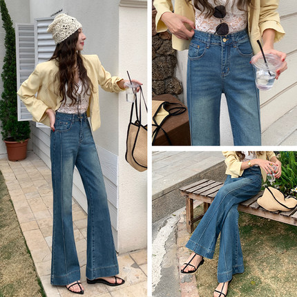 乔栈秋冬新款高腰阔腿裤微喇牛仔裤女2025韩版修身宽松显瘦拖地裤
