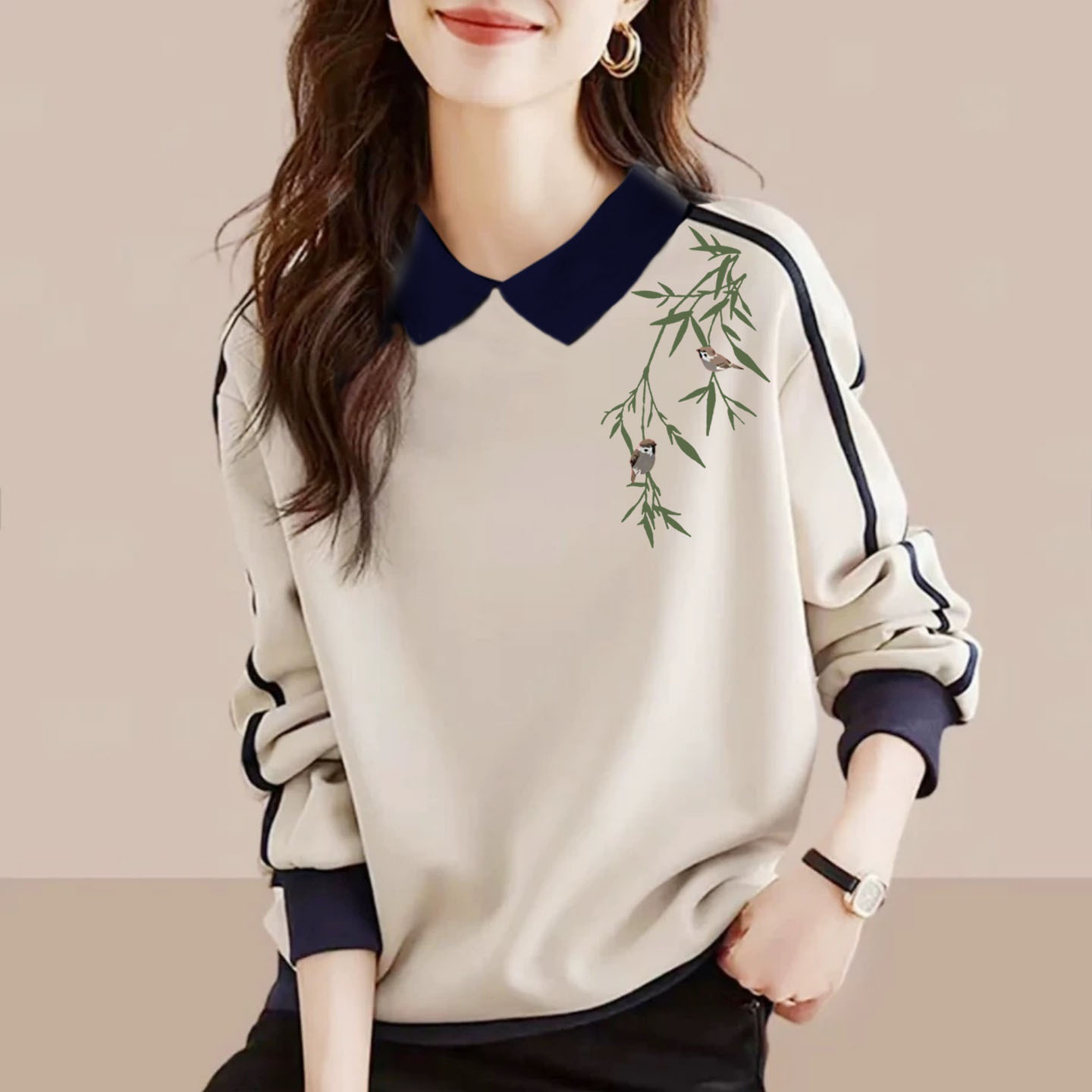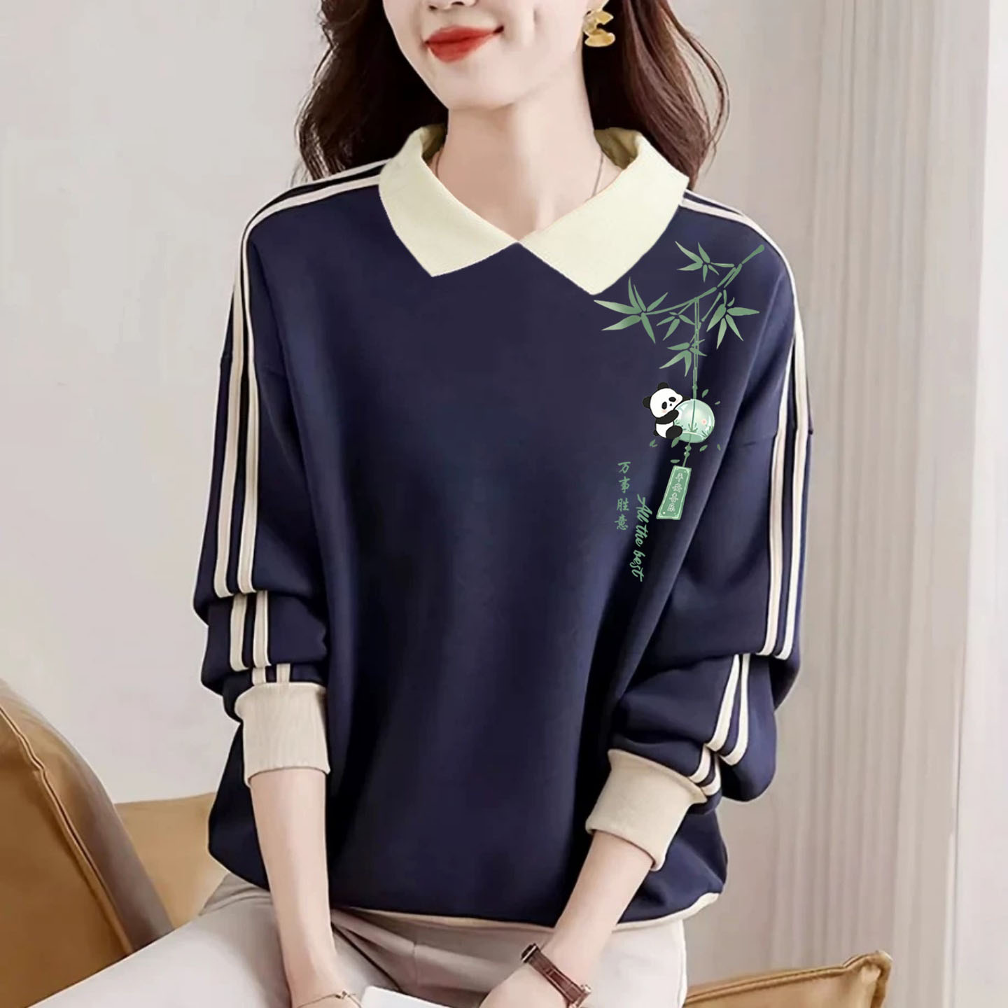 秋冬季新款时尚翻领长袖卫衣女纯棉打底衫气质拼接减龄polo领上衣