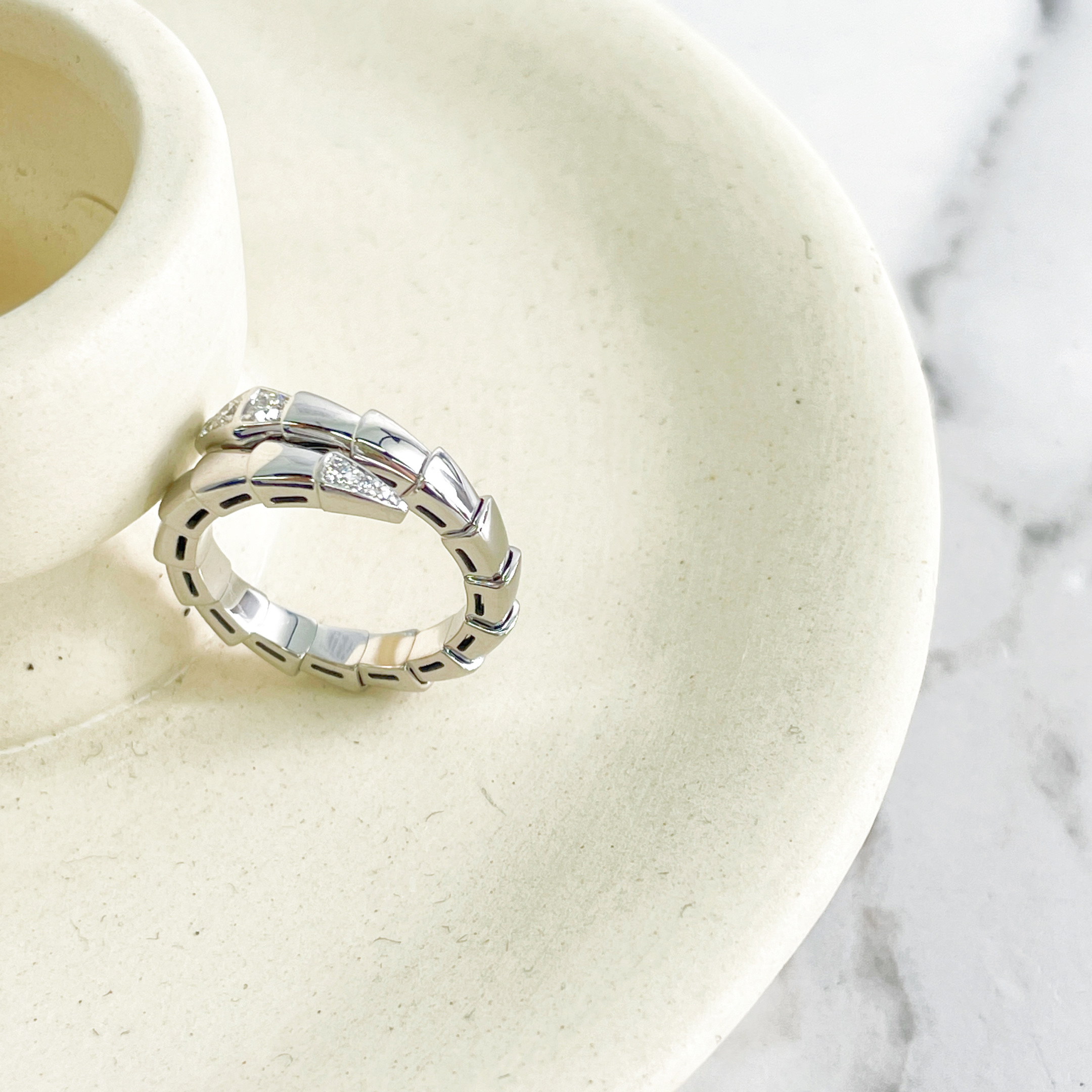 Bvlgari 宝格丽51-53号白金窄版头尾钻蛇头戒指 正品保真
