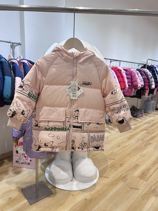 史努比儿童羽绒服女童秋冬季新款时尚百搭休闲短款鸭绒连帽外套