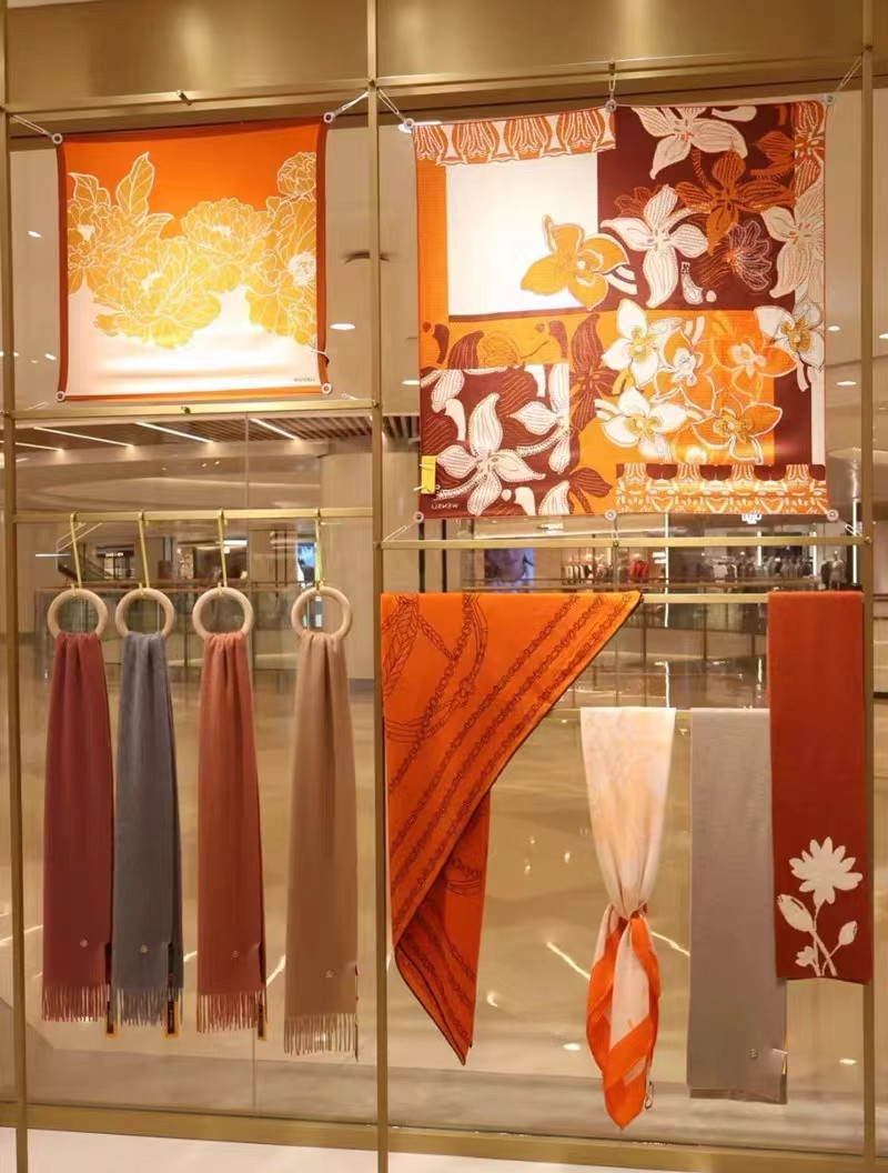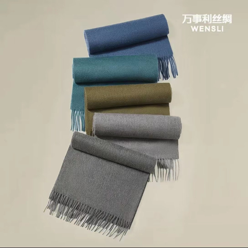 万事利2023秋冬实体店新款简约时尚高端保暖山羊绒纯色围巾秋语