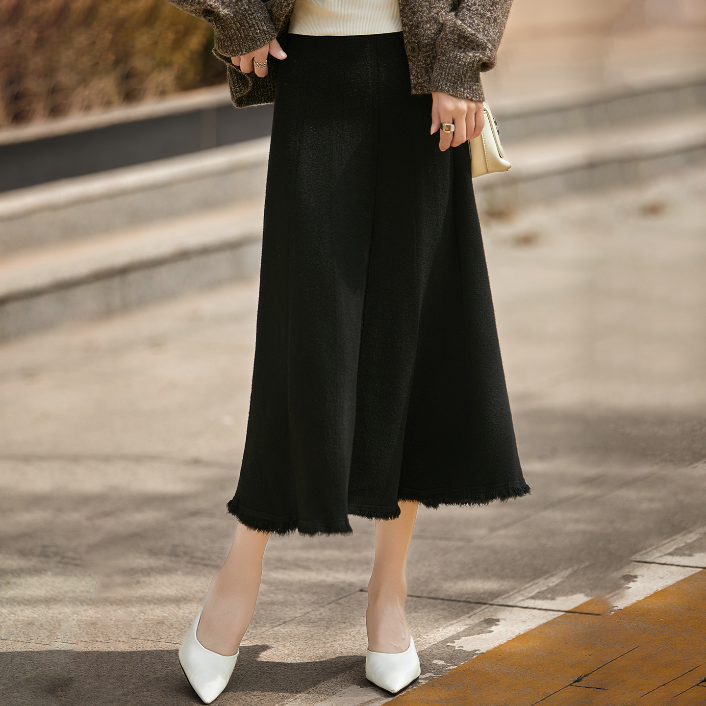 秋冬高腰毛衣针织半身裙高腰伞裙毛衣裙长袖毛线半裙针织冬季裙子