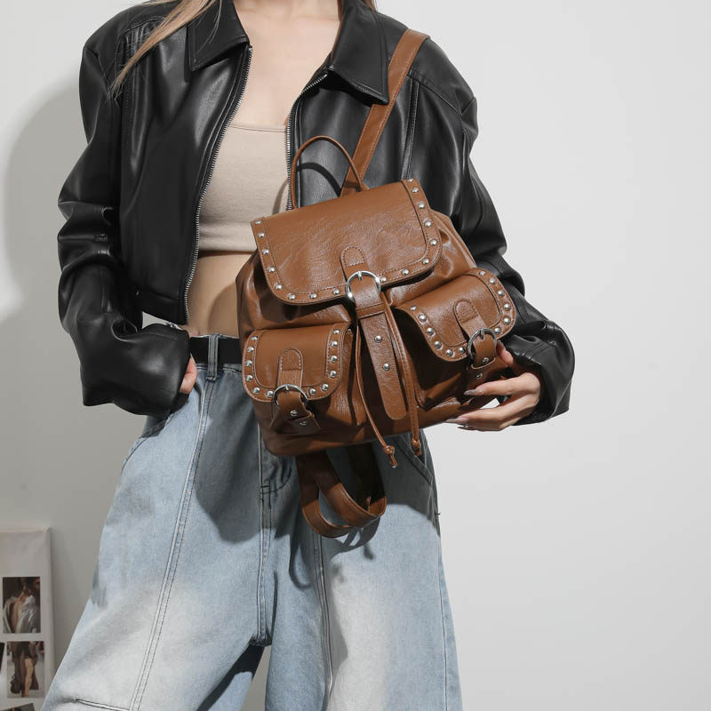 素韵格机车风铆钉双肩包女小众高级感大容量通勤背包