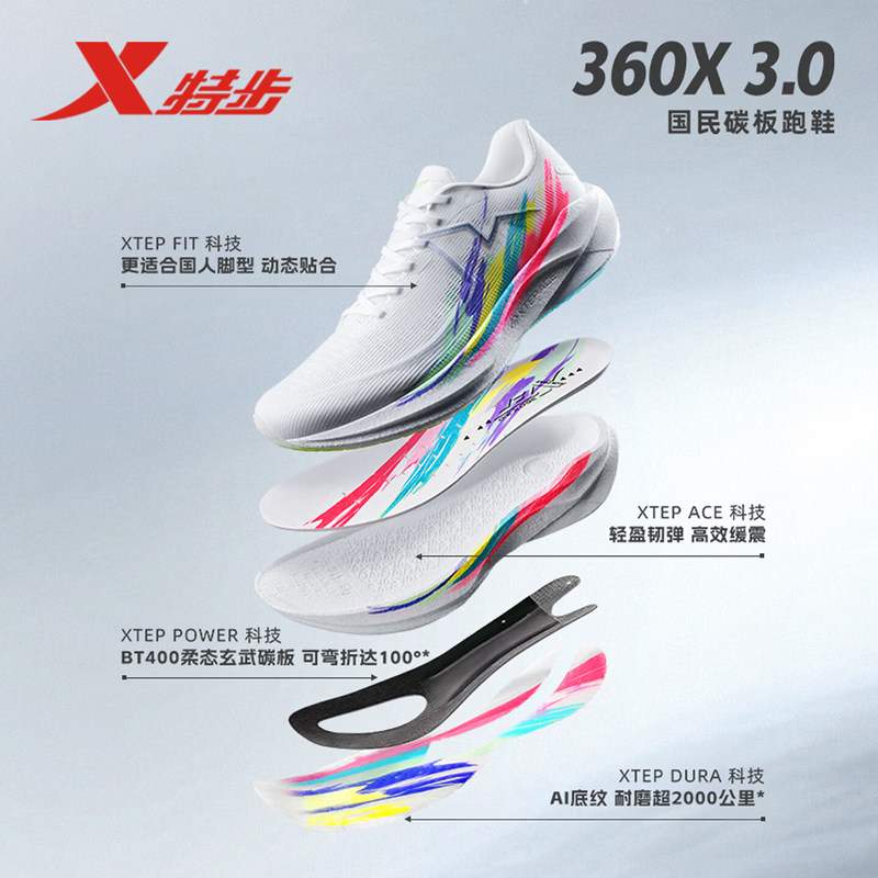 【范丞丞同款】特步360X3.0国民碳板跑鞋男鞋体测训练运动鞋子男