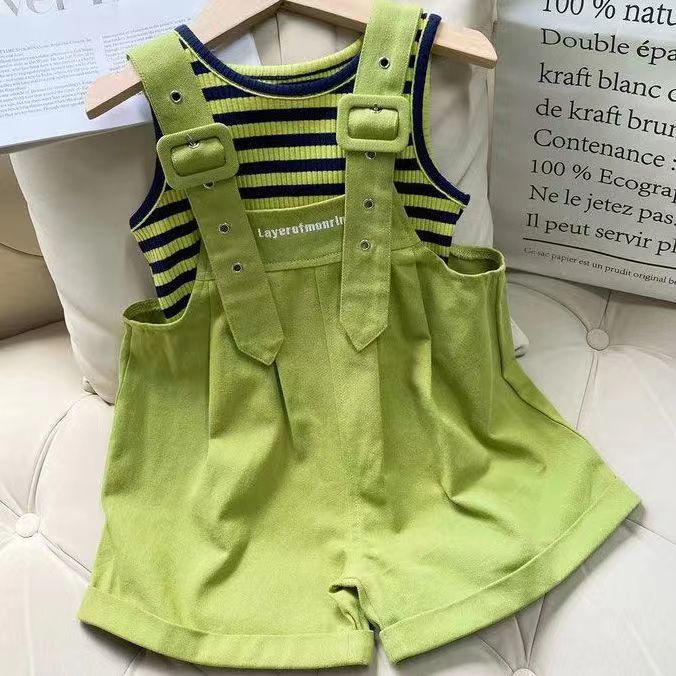 女童背带套装夏季2025新款儿童洋气短袖背心小女孩背带裤两件套潮