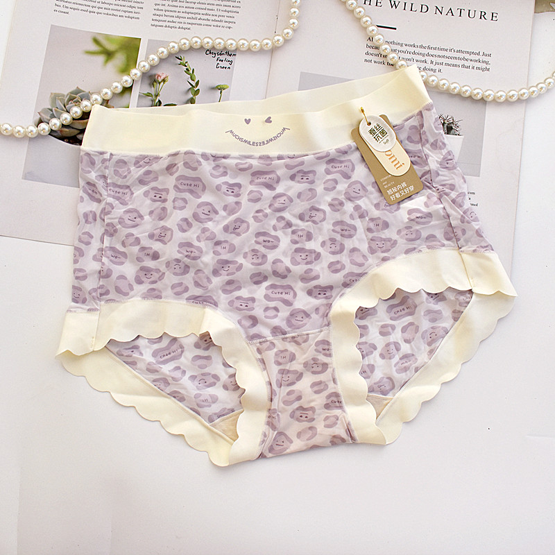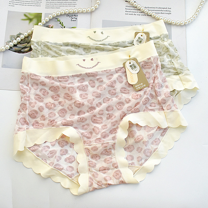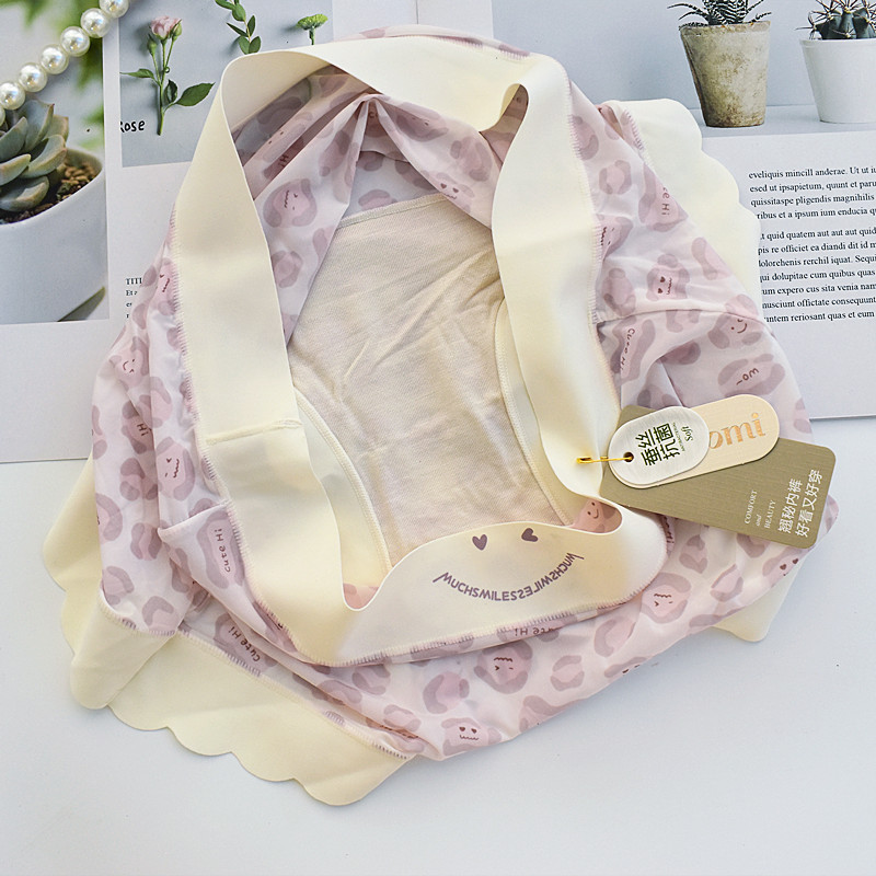翘密5223冰丝内裤卡通印花无痕包臀裸感透气蚕丝裆女中腰三角短裤