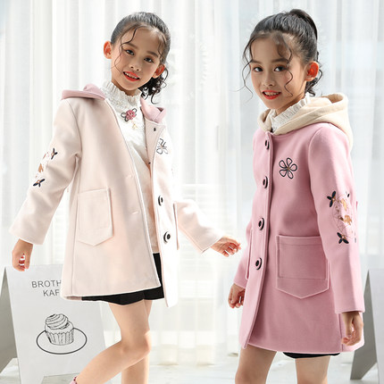 女童毛呢外套2025秋冬装新款连帽中长款加厚夹棉儿童洋气呢子大衣