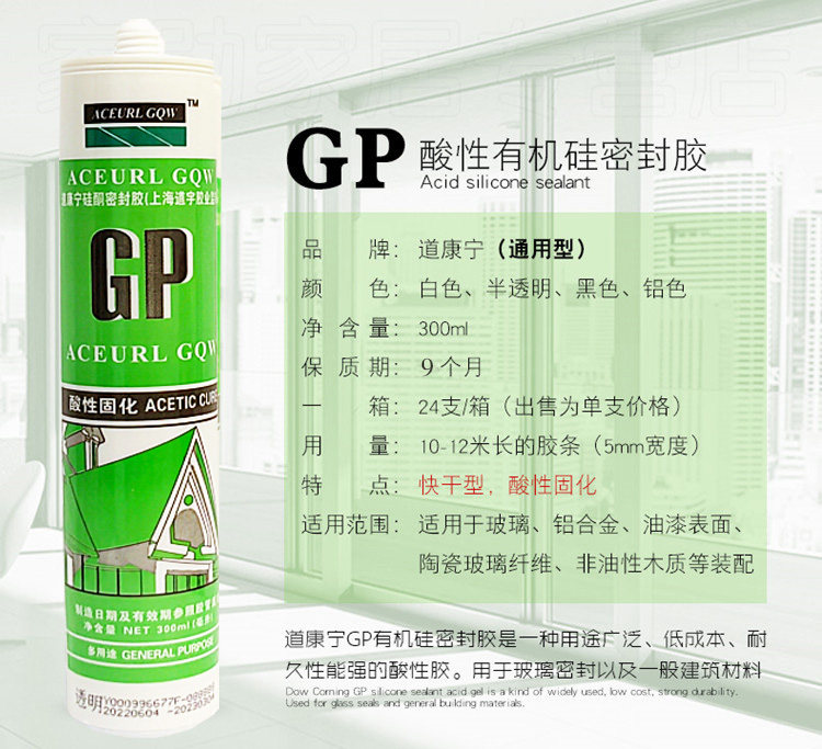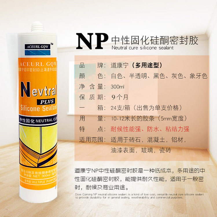 道康宁NP中性厨房卫浴防霉防水GP酸性透明黑白灰玻璃胶硅酮密封胶