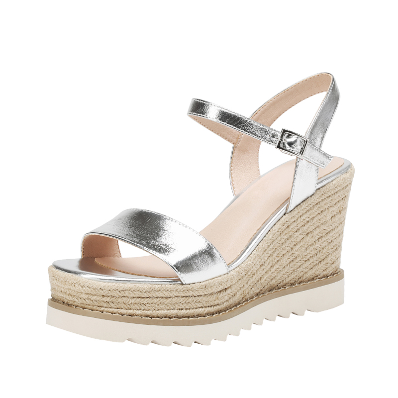 坡跟厚底凉鞋女2025新款真皮露趾松糕一字带小众增高罗马鞋子夏季