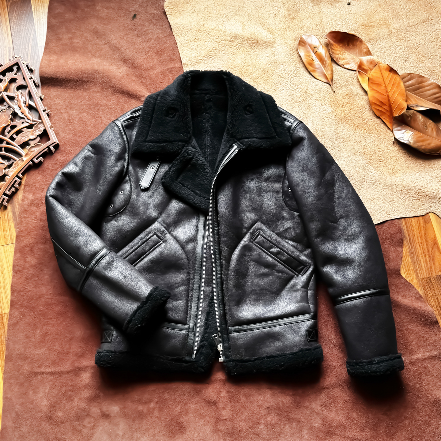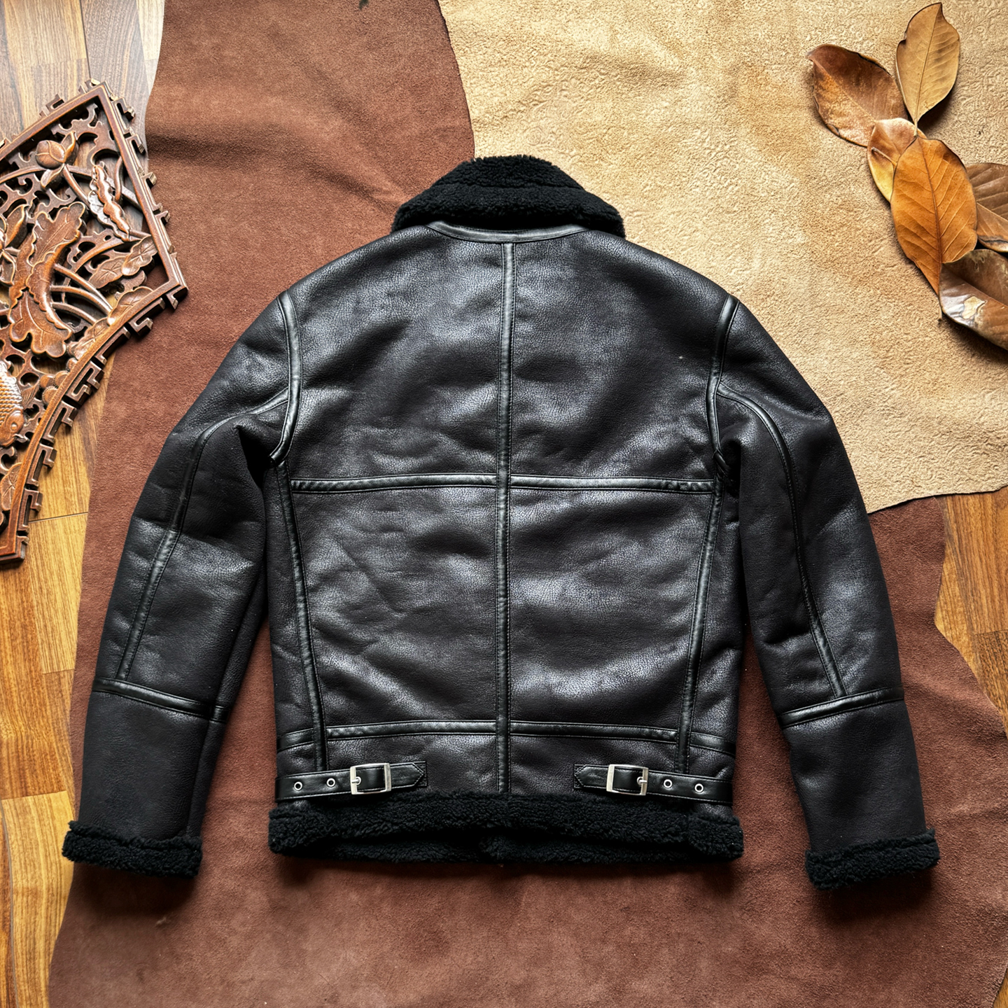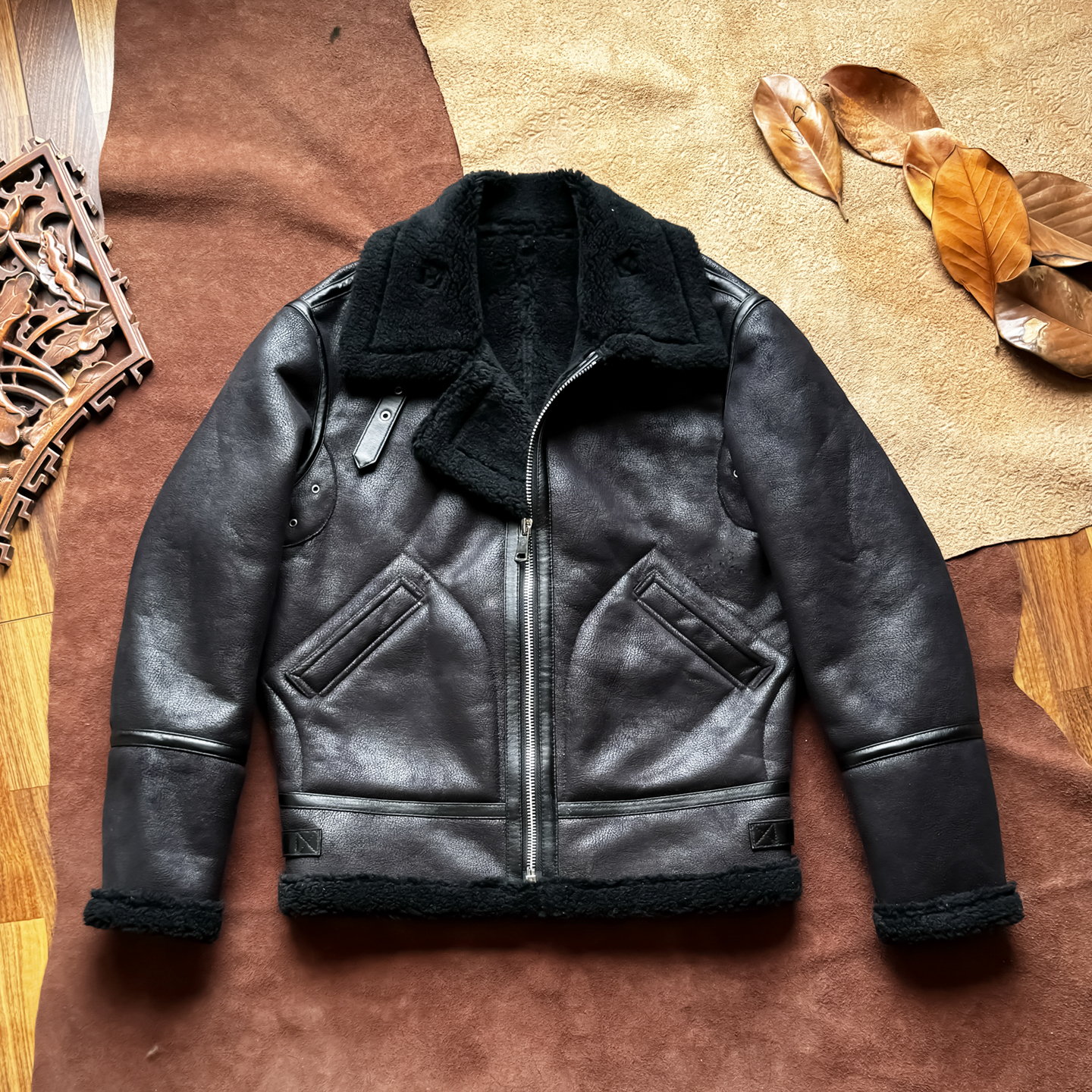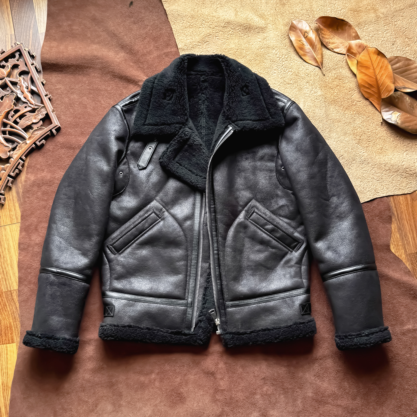 新品B3皮毛一体男麂皮绒羊羔毛外套机车修身短款青年夹克冬季厚潮