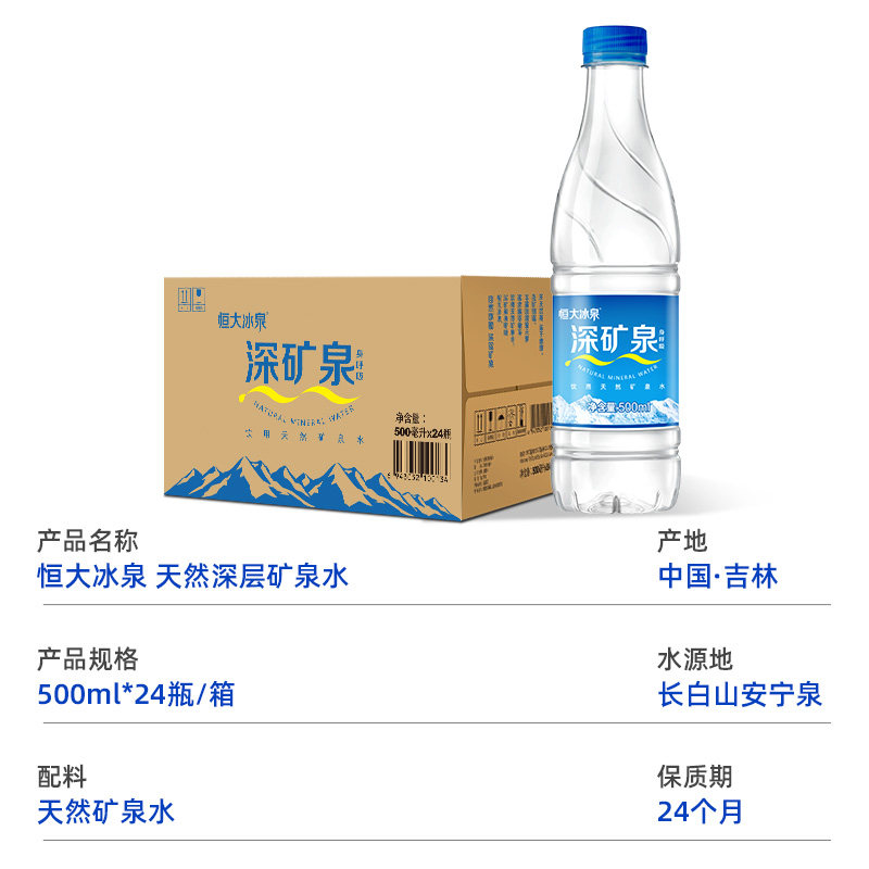 恒大冰泉饮用天然矿泉水500ml*48瓶含偏硅酸家庭家用量贩装