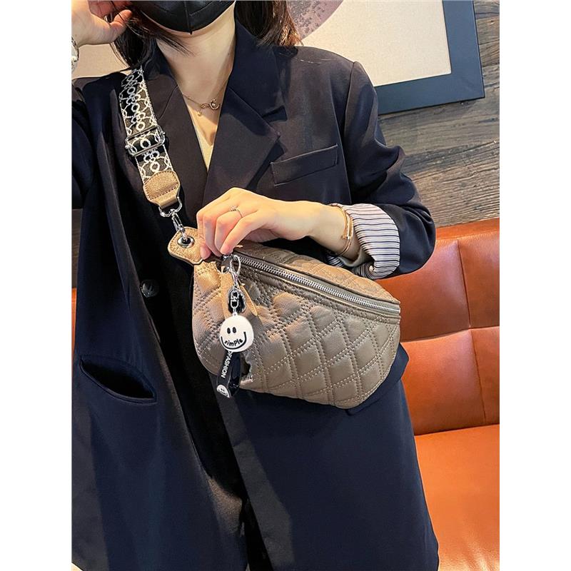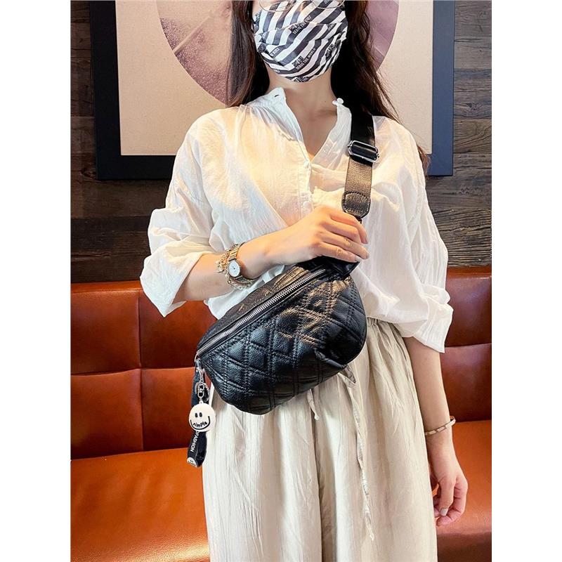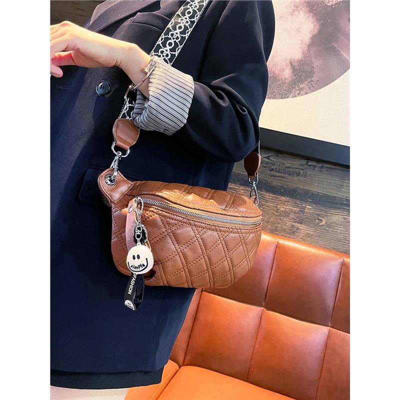 真皮马鞍包女2025新款韩版菱格软皮大容量胸包街头潮流时尚腰包潮