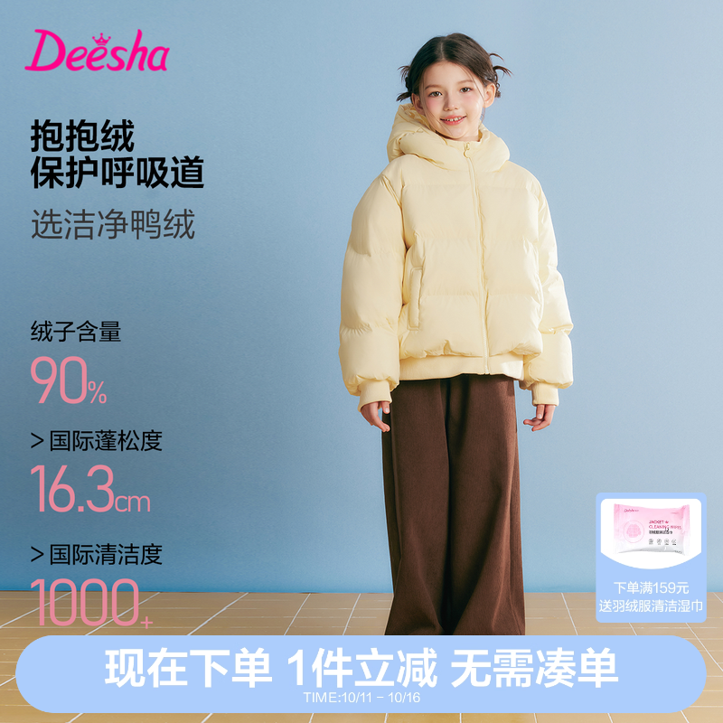 笛莎官方童装女童羽绒服冬季新款大童女孩儿童洋气时尚短款外套