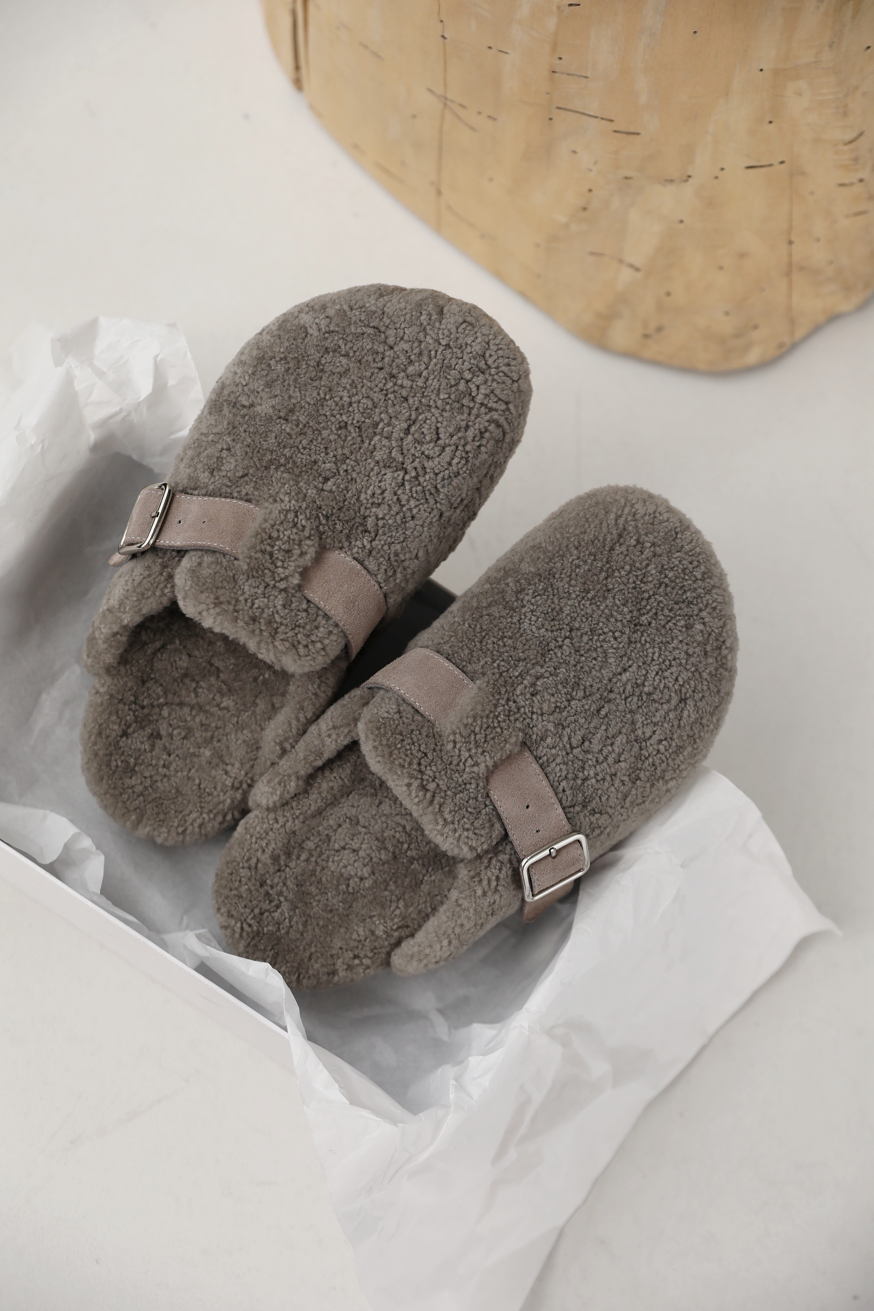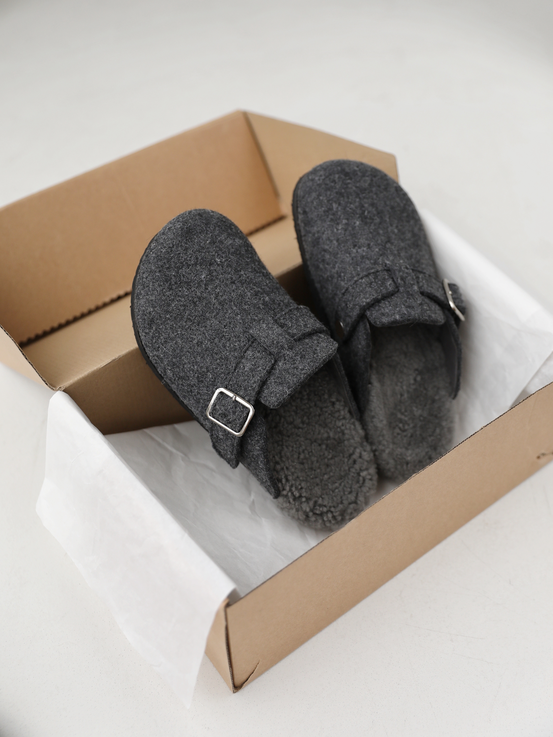 彭姐厚底百搭毛毡勃肯拖鞋女