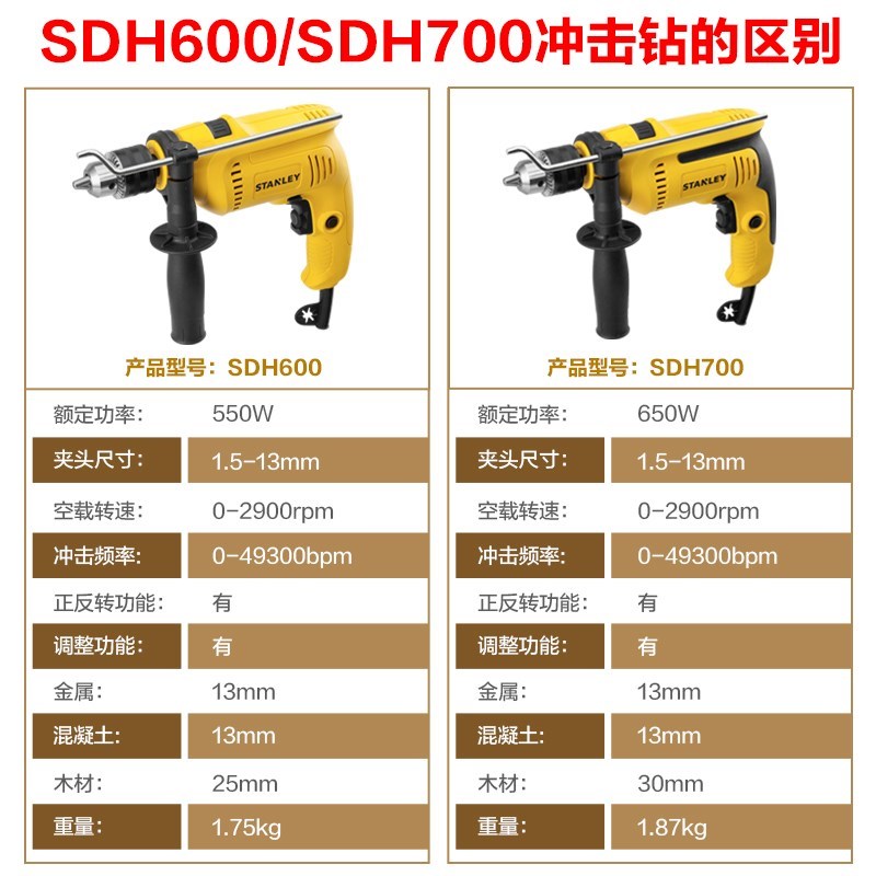 STANLEY/史丹利冲击钻SDH600kV 700kV电钻手枪钻套装工具箱
