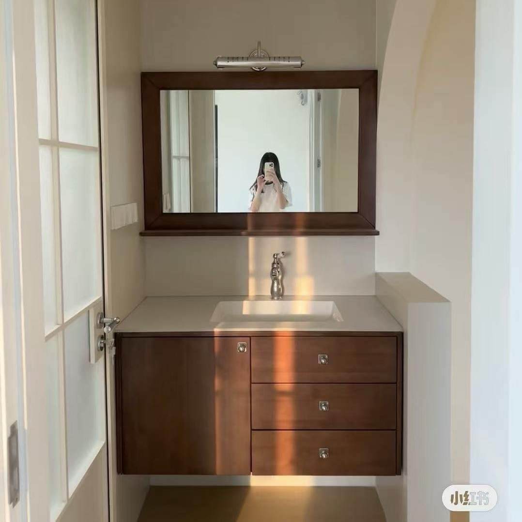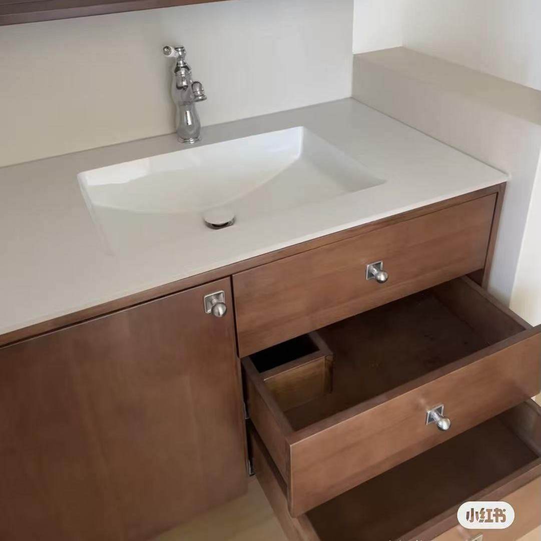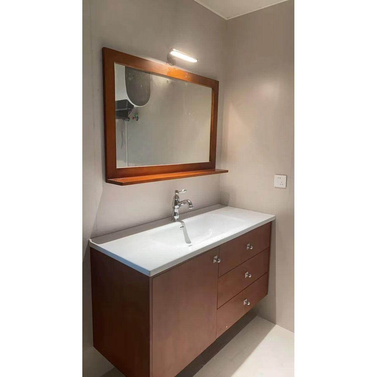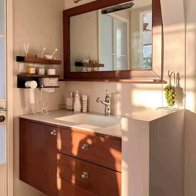 中古风浴室柜胡桃色柚木色陶瓷一体盆洗手洗脸洗面盆柜组合洗漱台