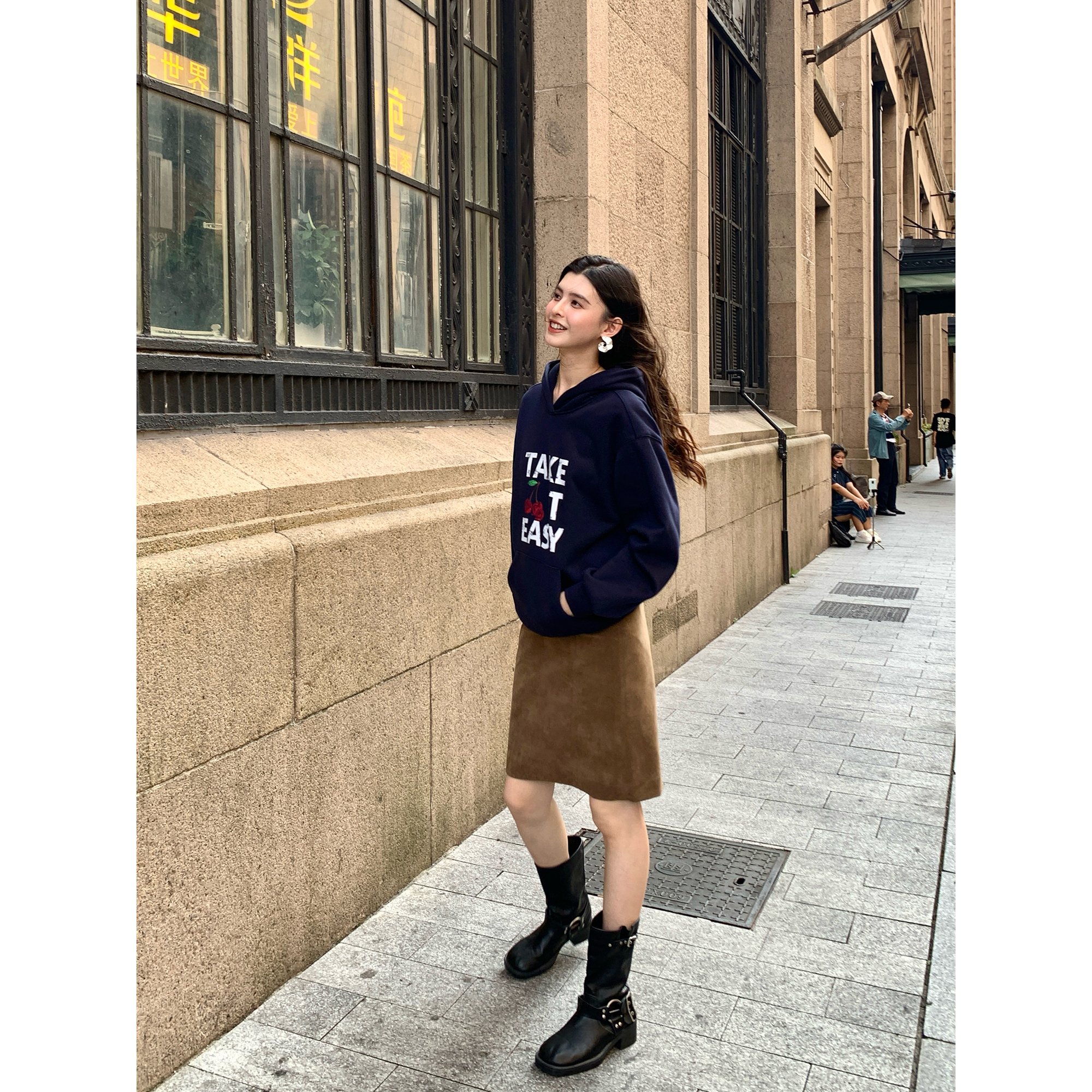 pusumede 信步首尔 韩系印花连帽卫衣女休闲慵懒帽衫加绒长袖上衣