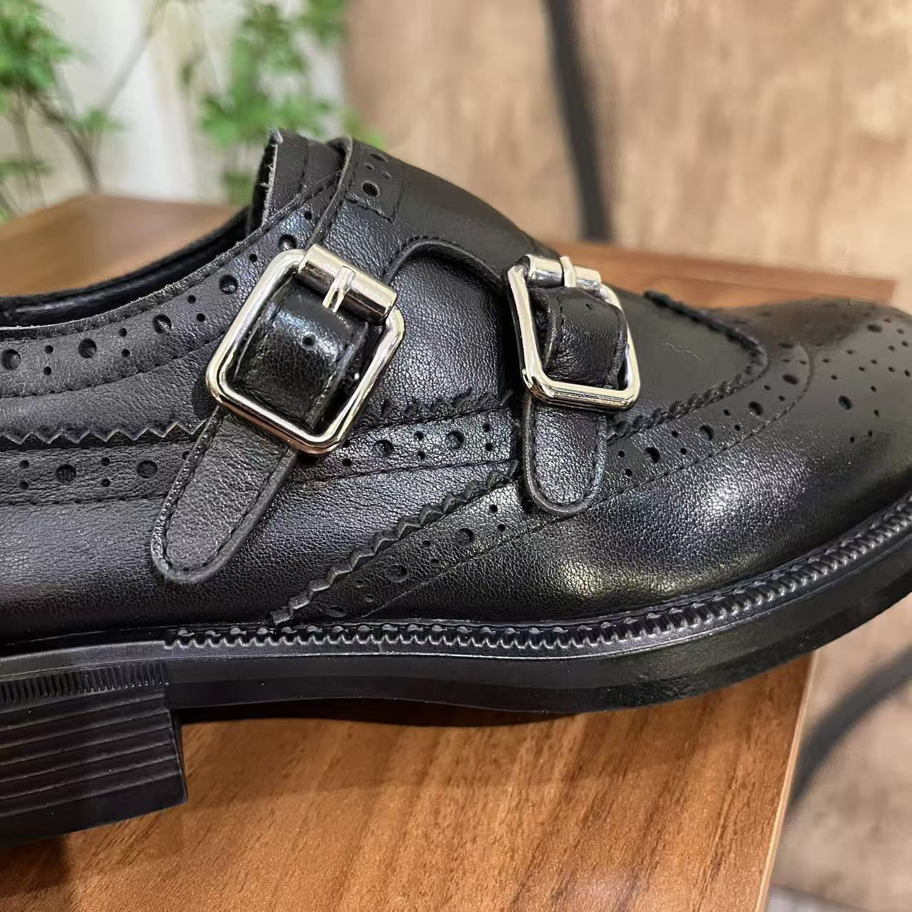 头层牛皮英伦风布洛克雕花鞋女软黑色真皮圆头搭扣软底百搭小皮鞋