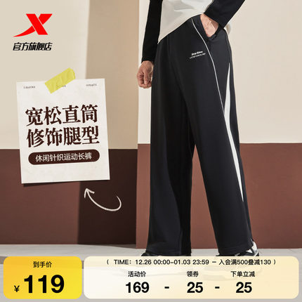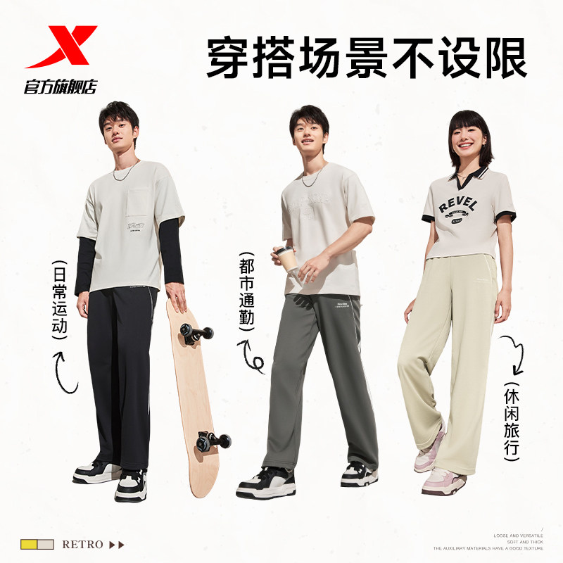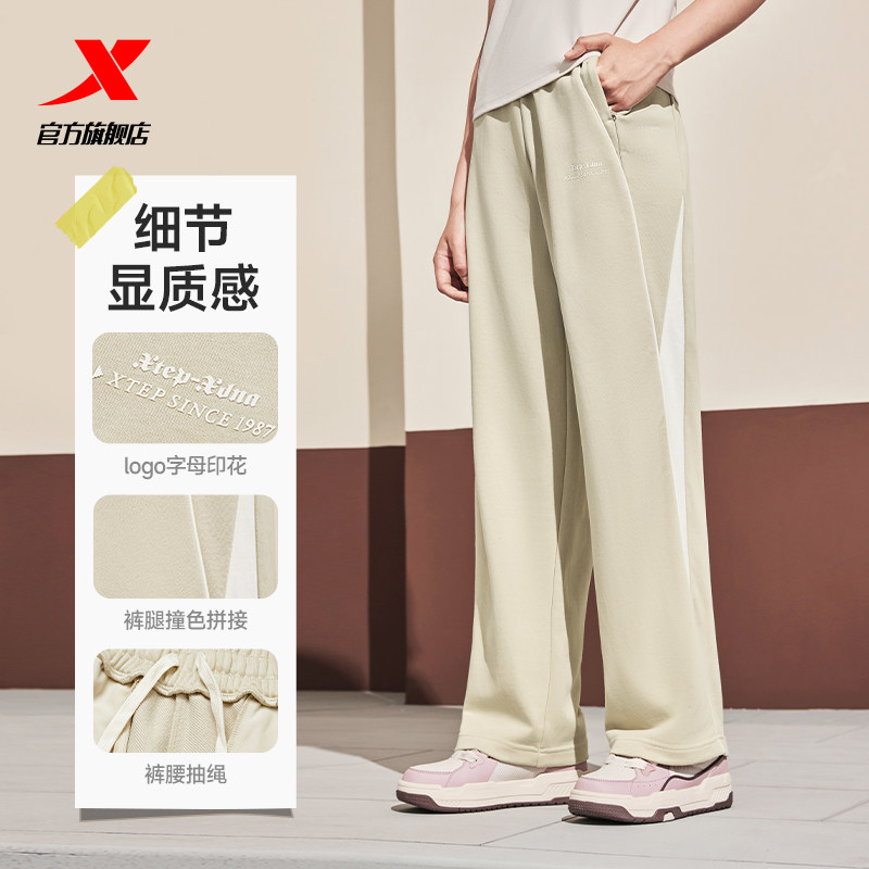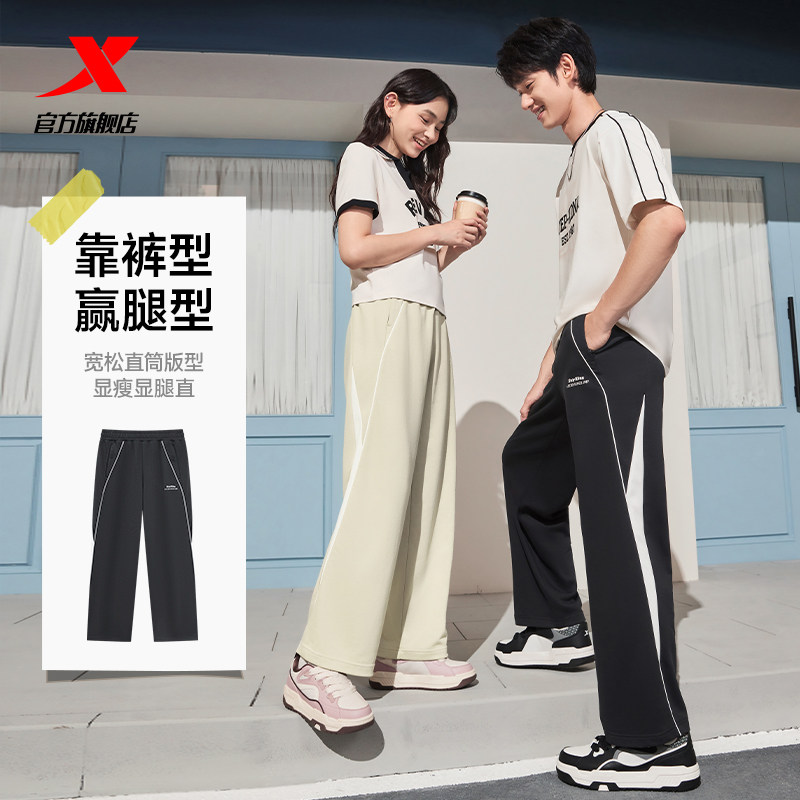 特步运动裤男女同款2025年秋季新款撞色休闲裤针织情侣直筒阔腿裤