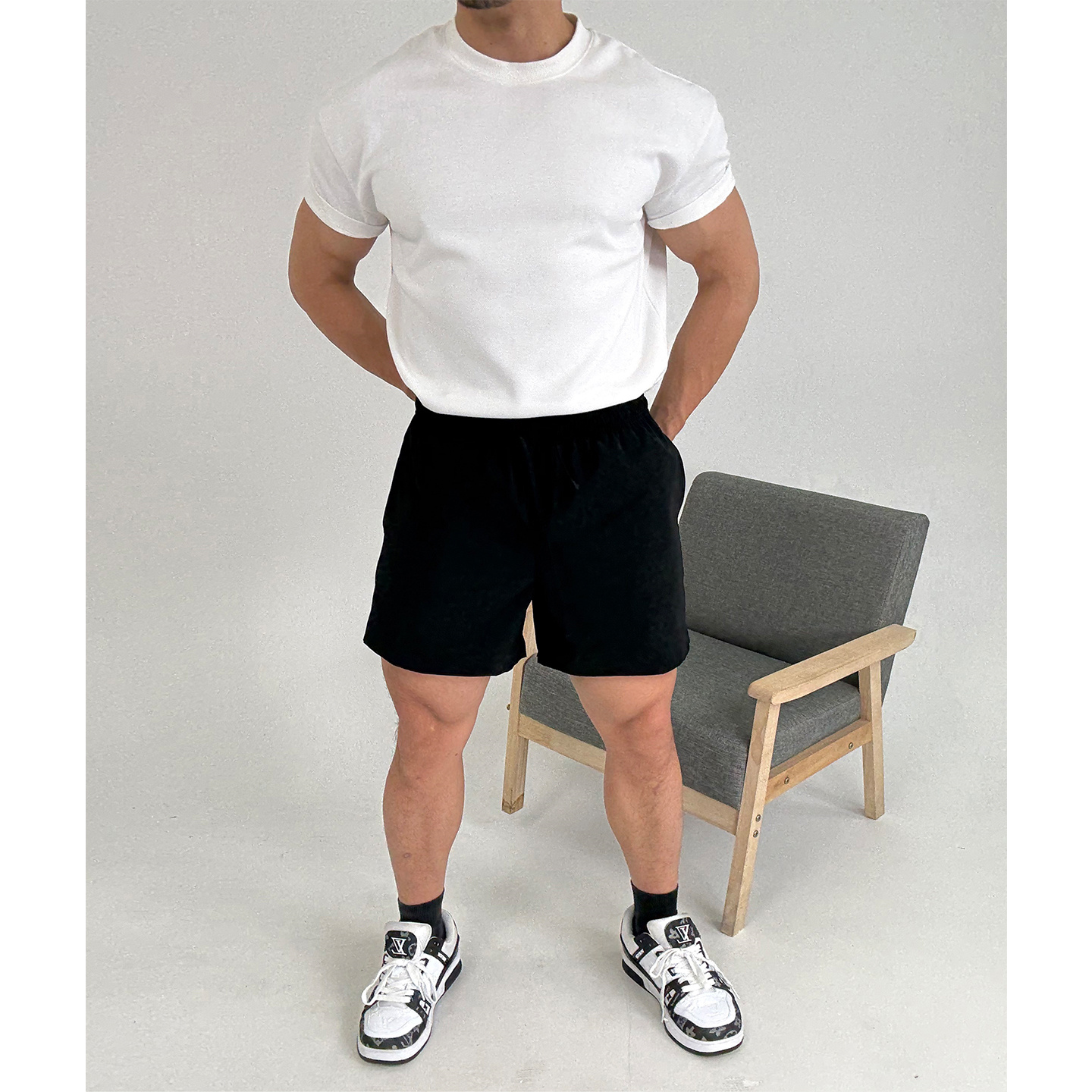 微弹夏日尼龙薄款阔腿直筒短裤健身运动四分裤!体育生翘臀深蹲男