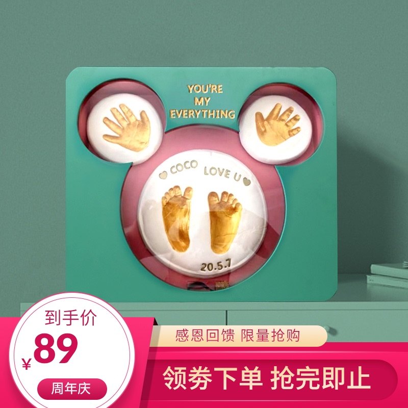 极速宝宝手足印泥手印纪念品相框新生儿手模手脚T印满月百天胎毛
