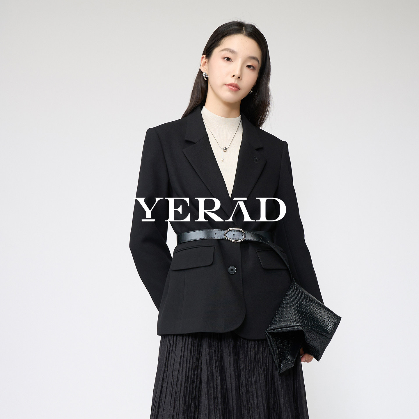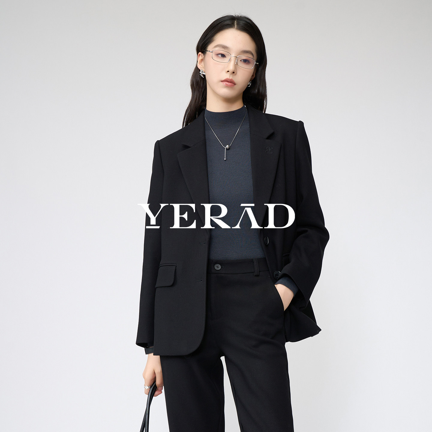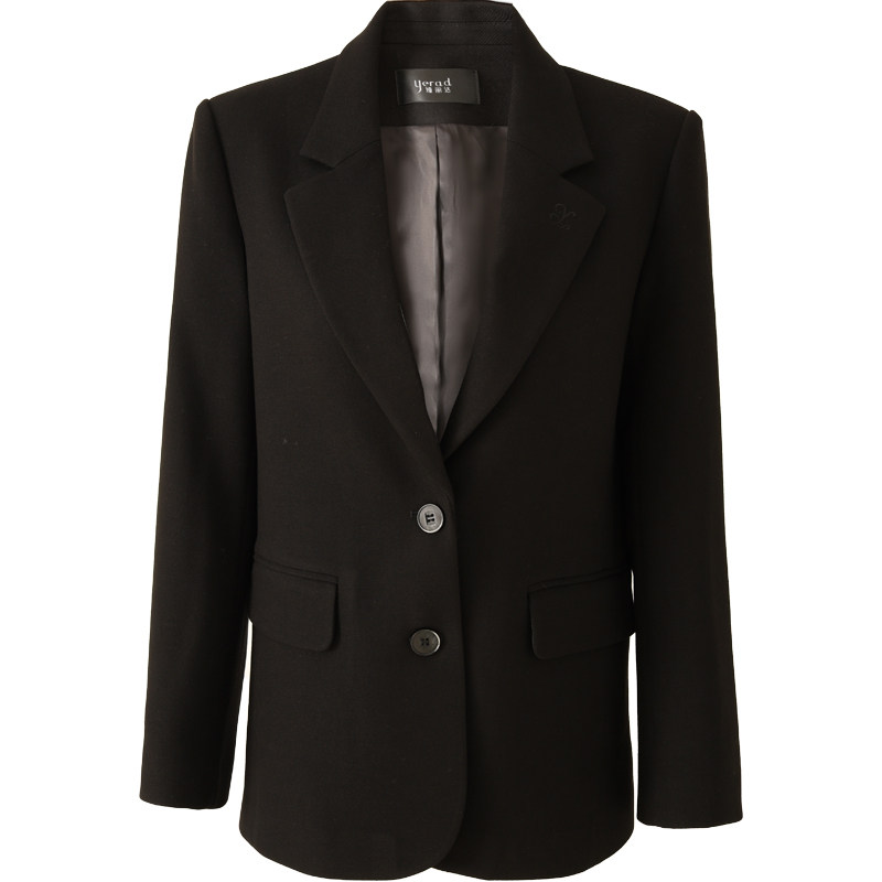 娅丽达老钱黑色毛呢西装外套女秋冬新款女装高级休闲修身羊毛西服