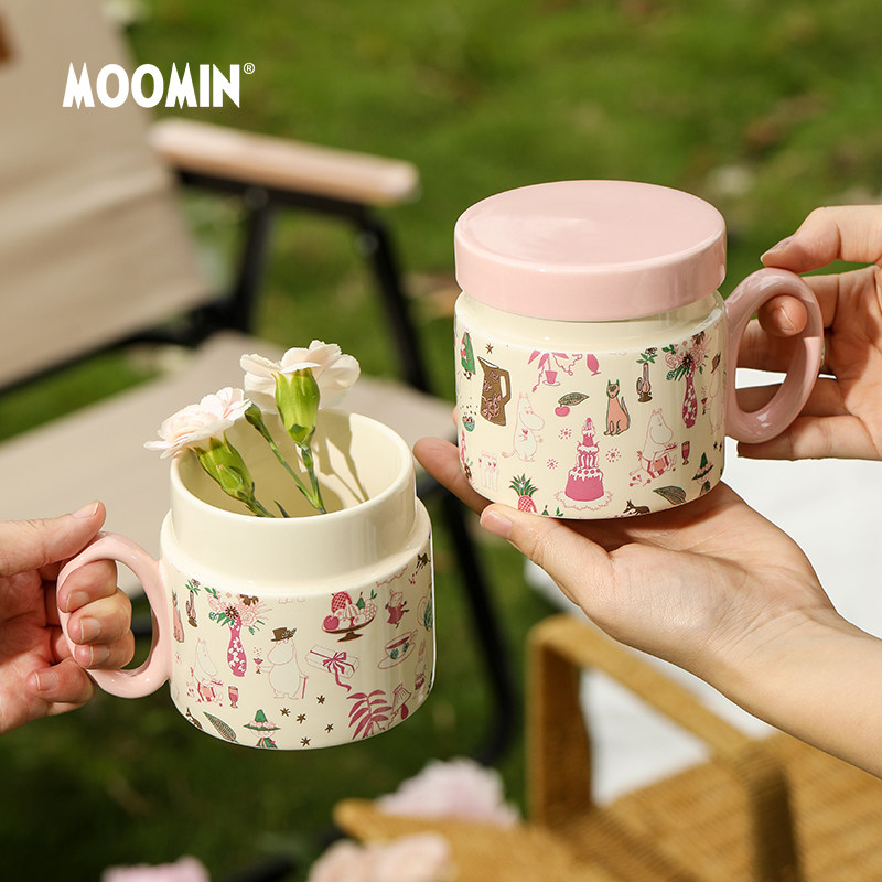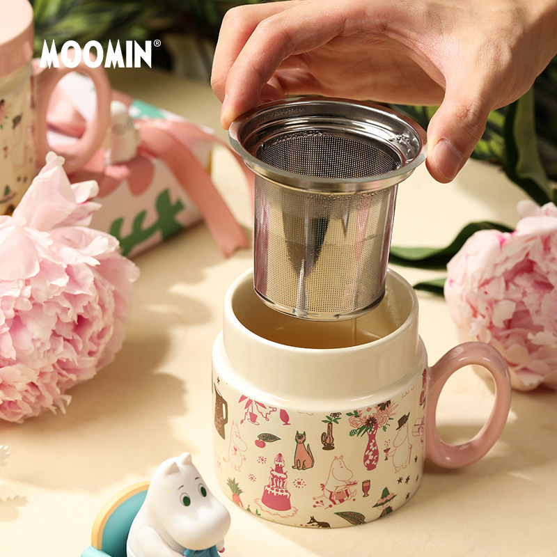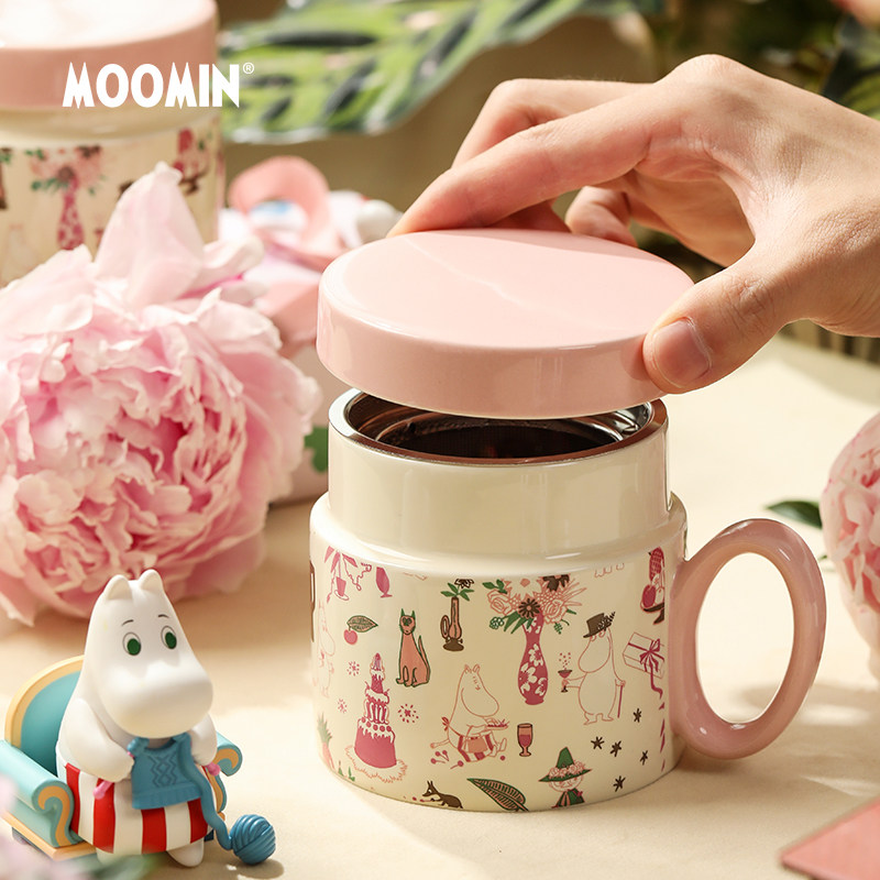 芬兰Moomin姆明陶瓷马克杯带盖可爱花茶杯茶滤杯子高颜值水杯礼物