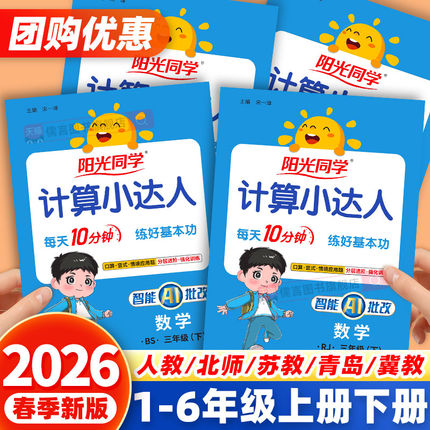2026春新版阳光同学计算小达人一二三四五六年级下册上册语文数学英语人教版北师苏教青岛小学同步练习专项强化训练题卡口算天天练
