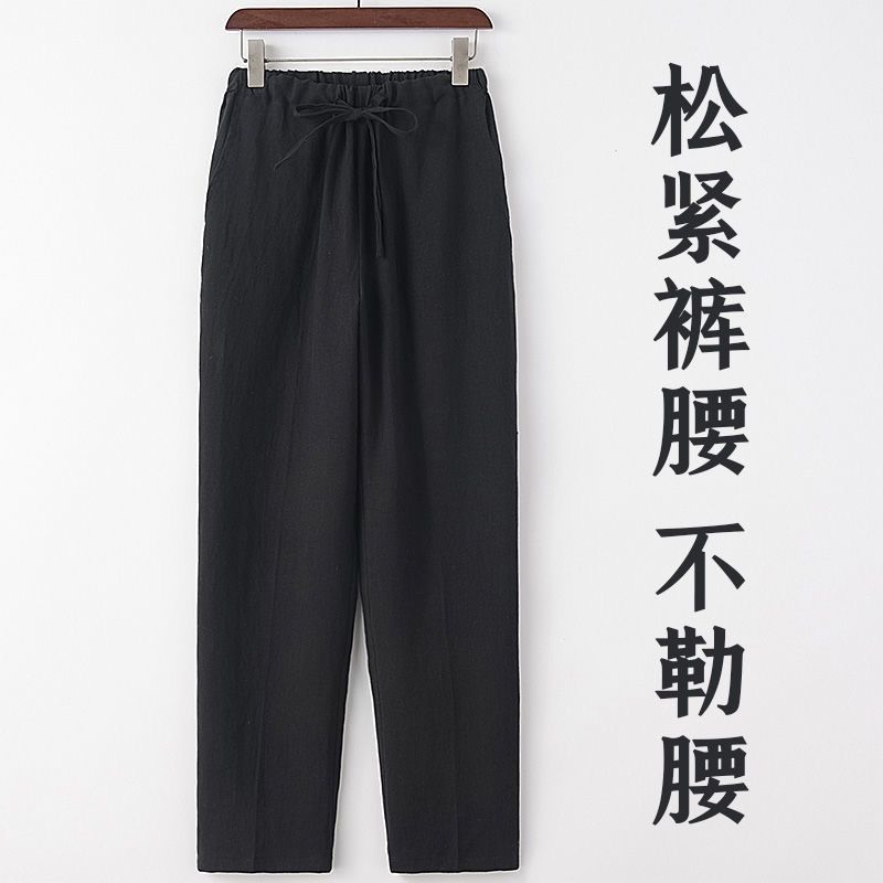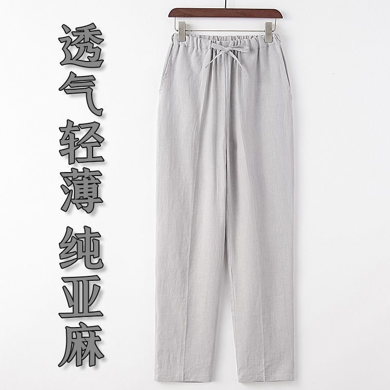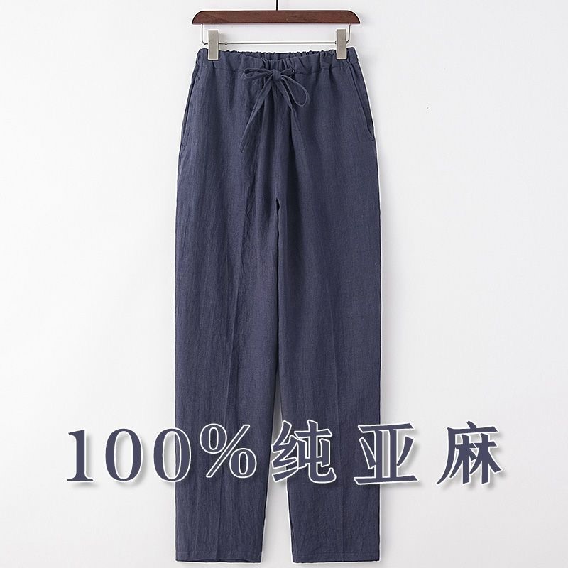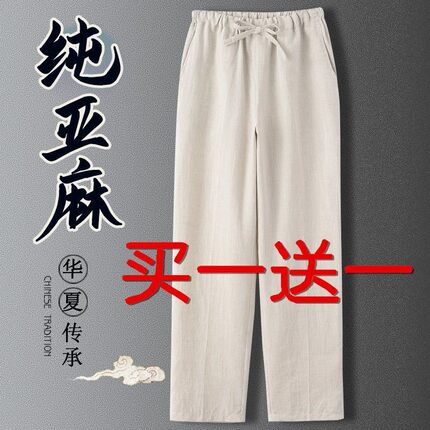 纯亚麻男士休闲裤夏季薄款裤子男宽松直筒裤中国风松紧腰凉感长裤