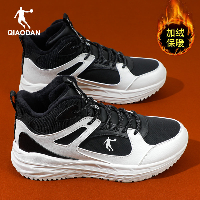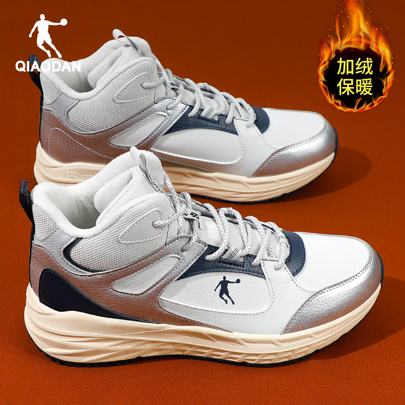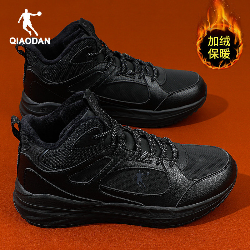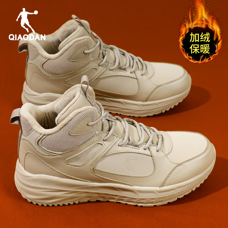 乔丹加绒棉鞋男鞋2025冬季新款高帮运动鞋厚底增高皮面防水休闲鞋