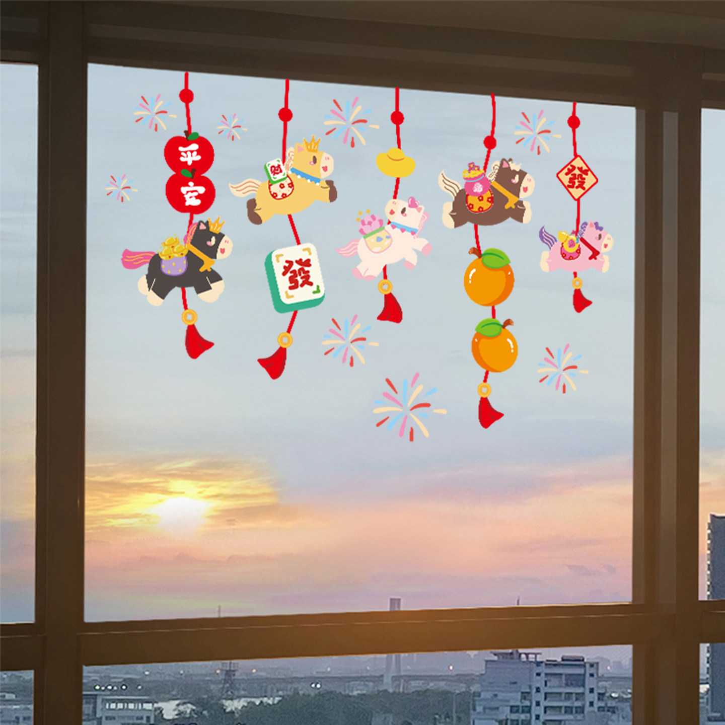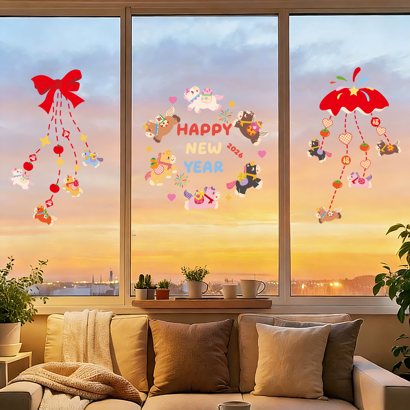 2026马年新年装饰窗花静电玻璃门贴纸春节场景布置氛围静电窗贴画