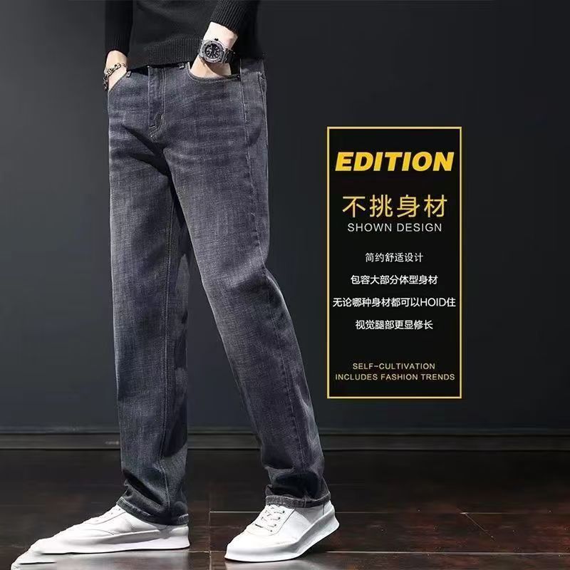 弹力牛仔裤男士宽松冬季加绒宽松直筒男裤春秋款工地干活男款裤子