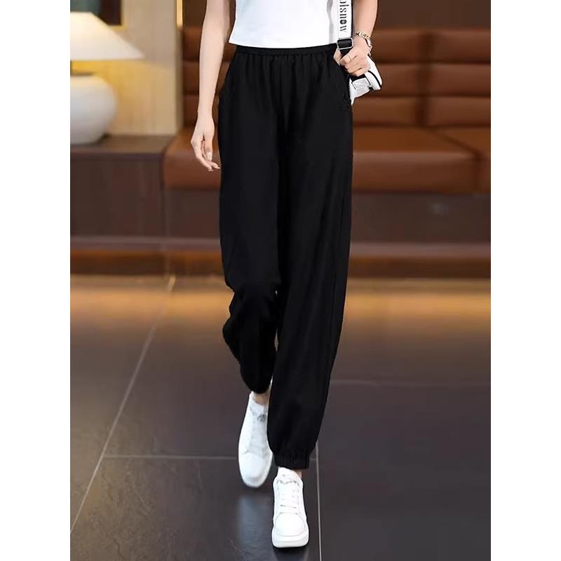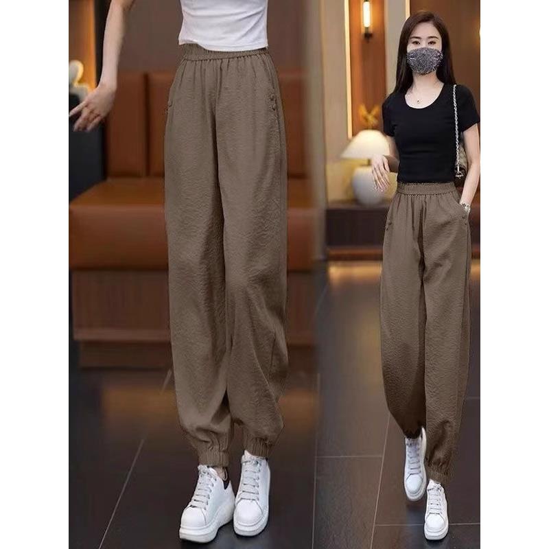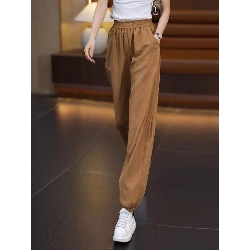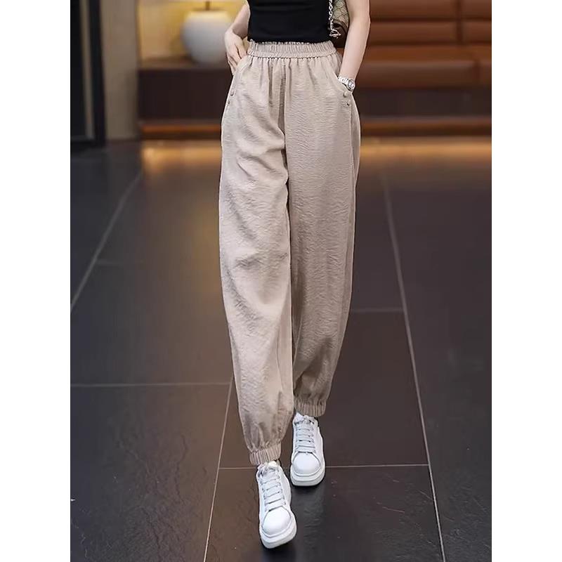 冰丝哈伦裤女夏季薄款2025新款高腰宽松大码束脚小个子九分休闲裤