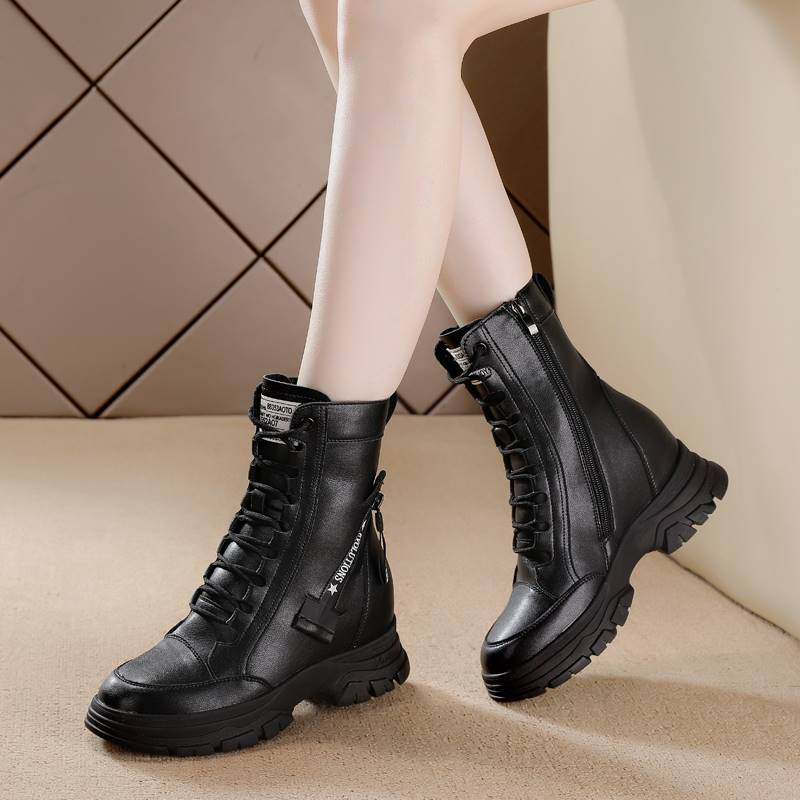 高跟马丁靴2024秋冬加绒鞋子真皮