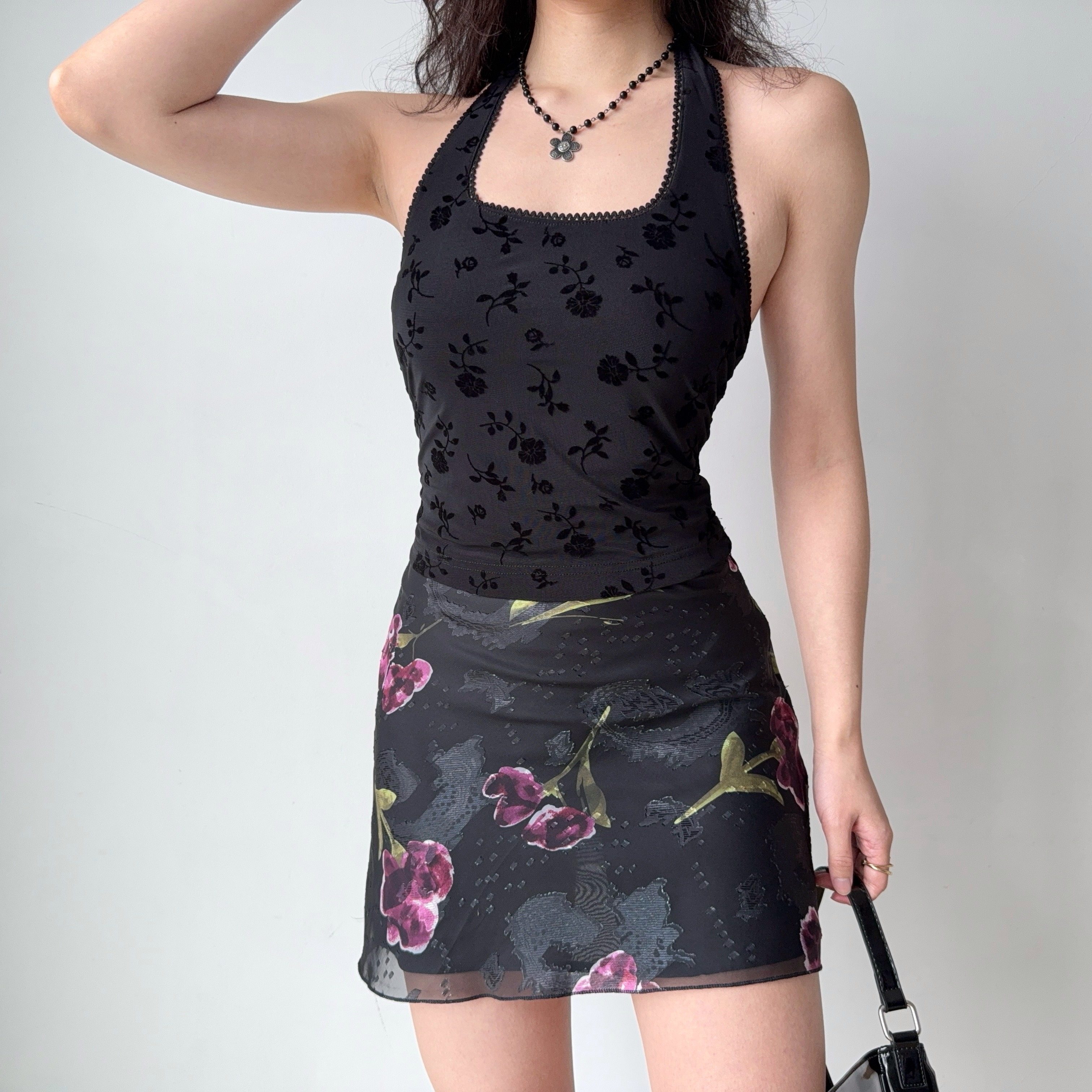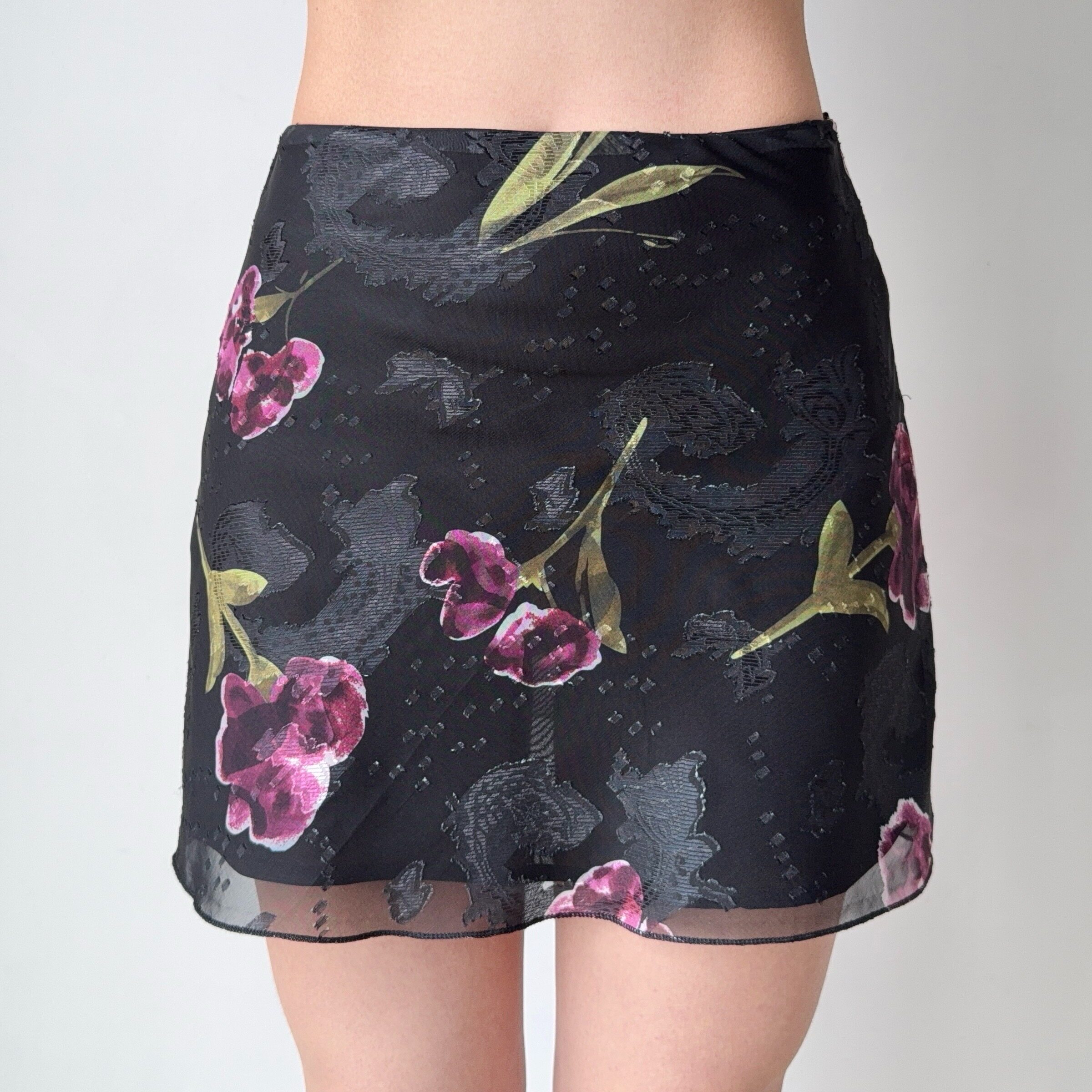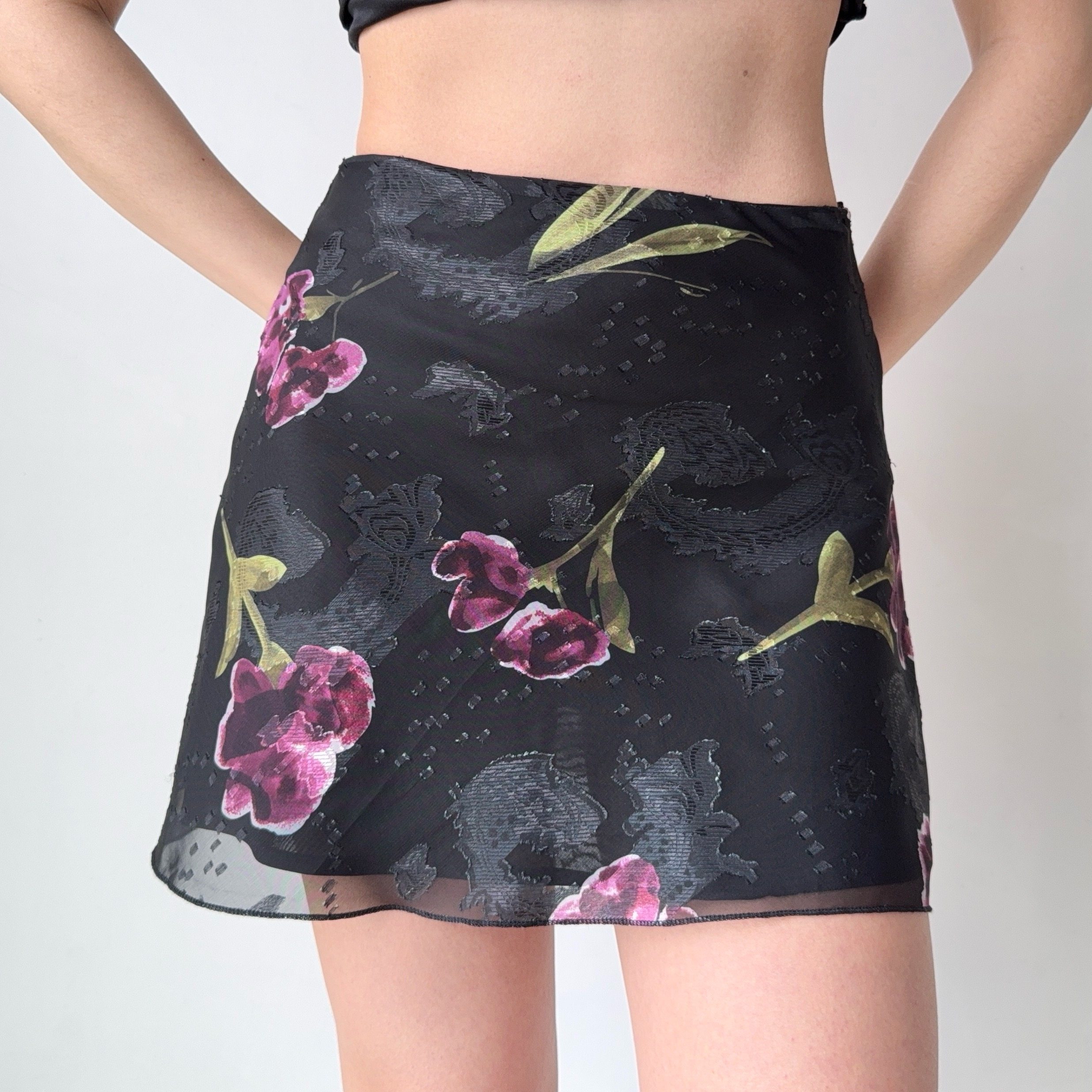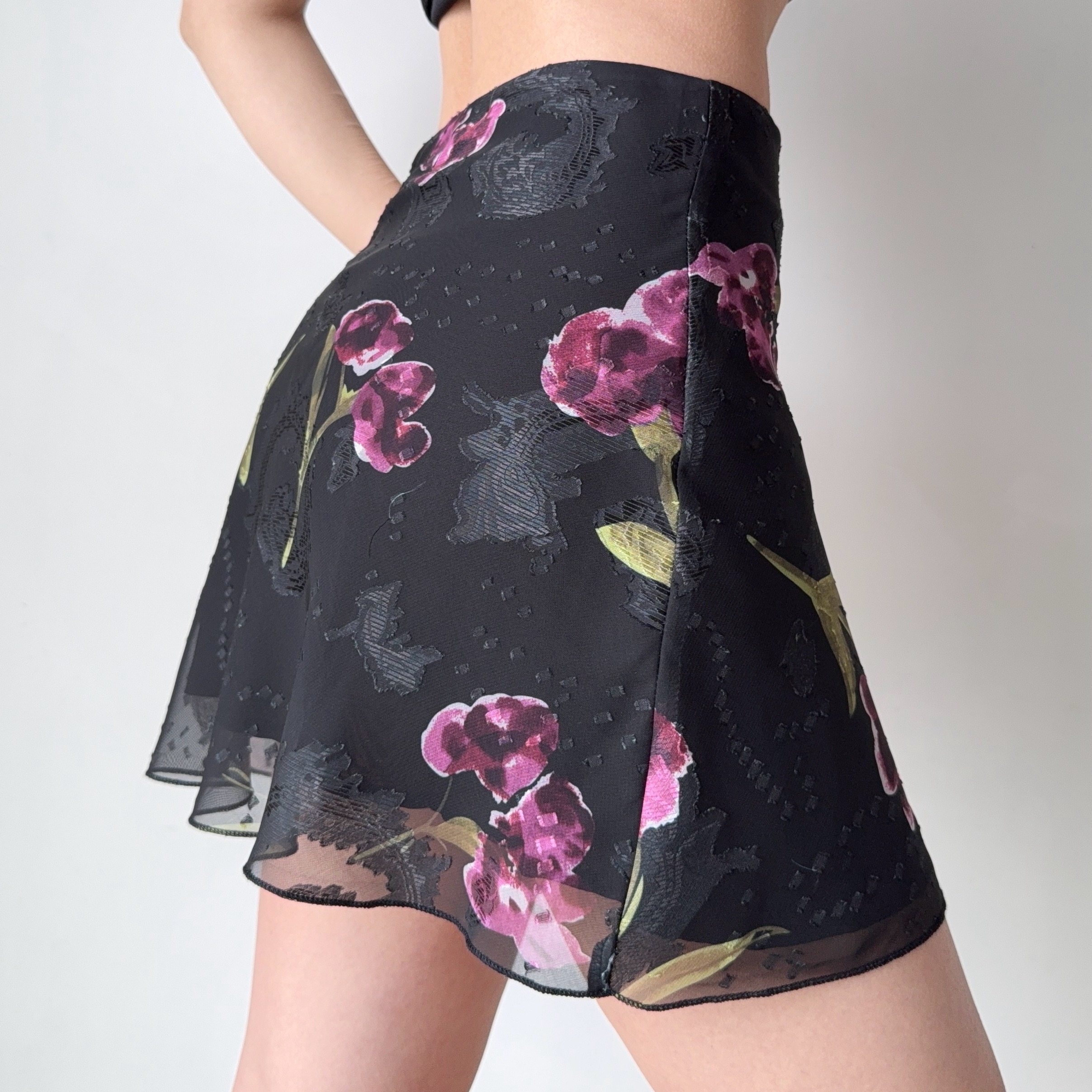Go Girl Go 复古欧美风花朵印花a字短裙网纱半身裙女夏季