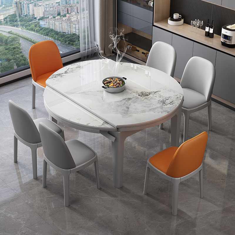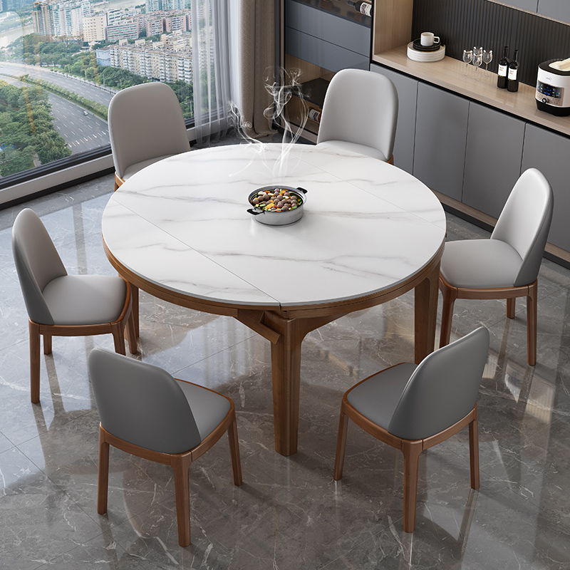 轻奢岩板b餐桌椅组合现代简约家用小户型伸缩折叠可变圆形实木饭