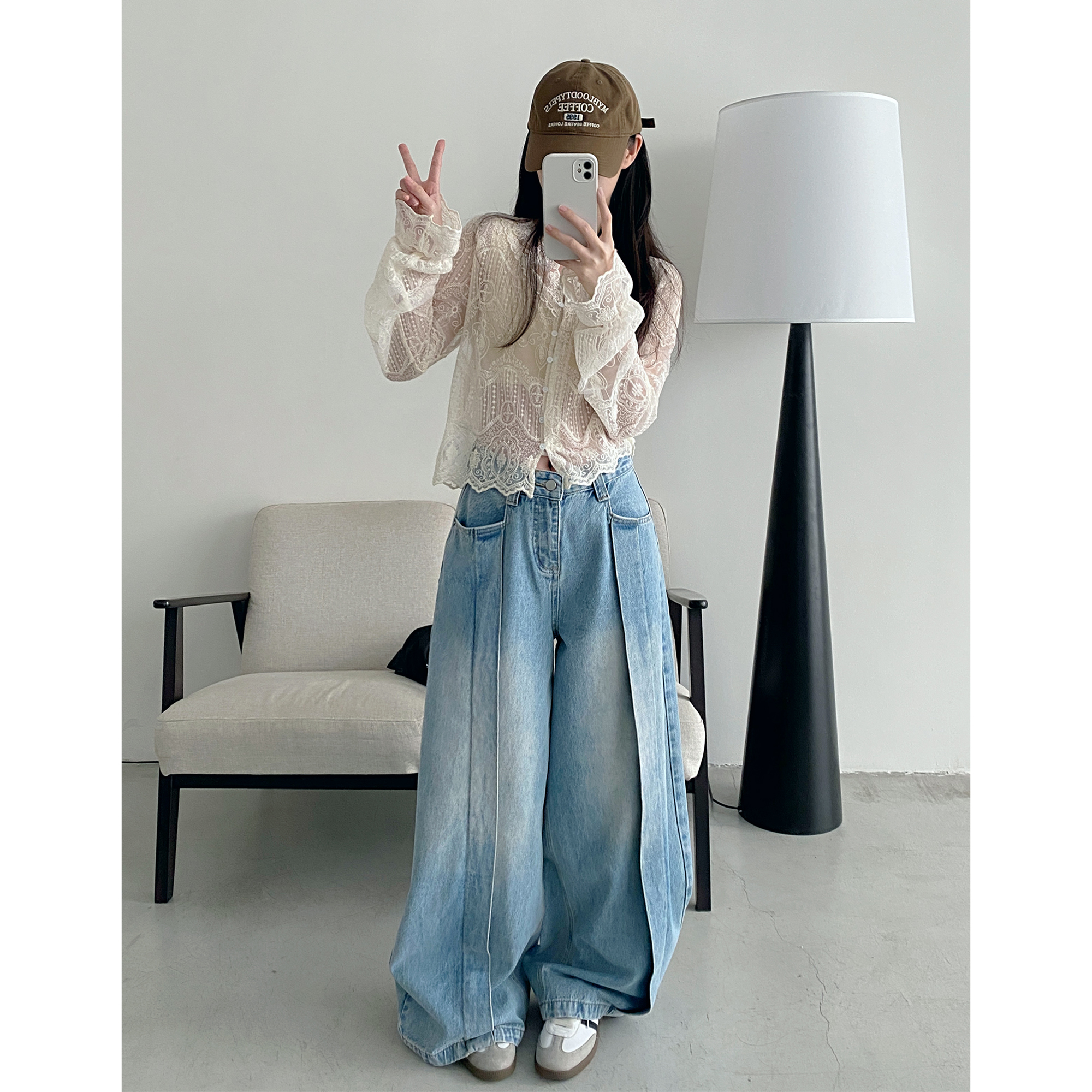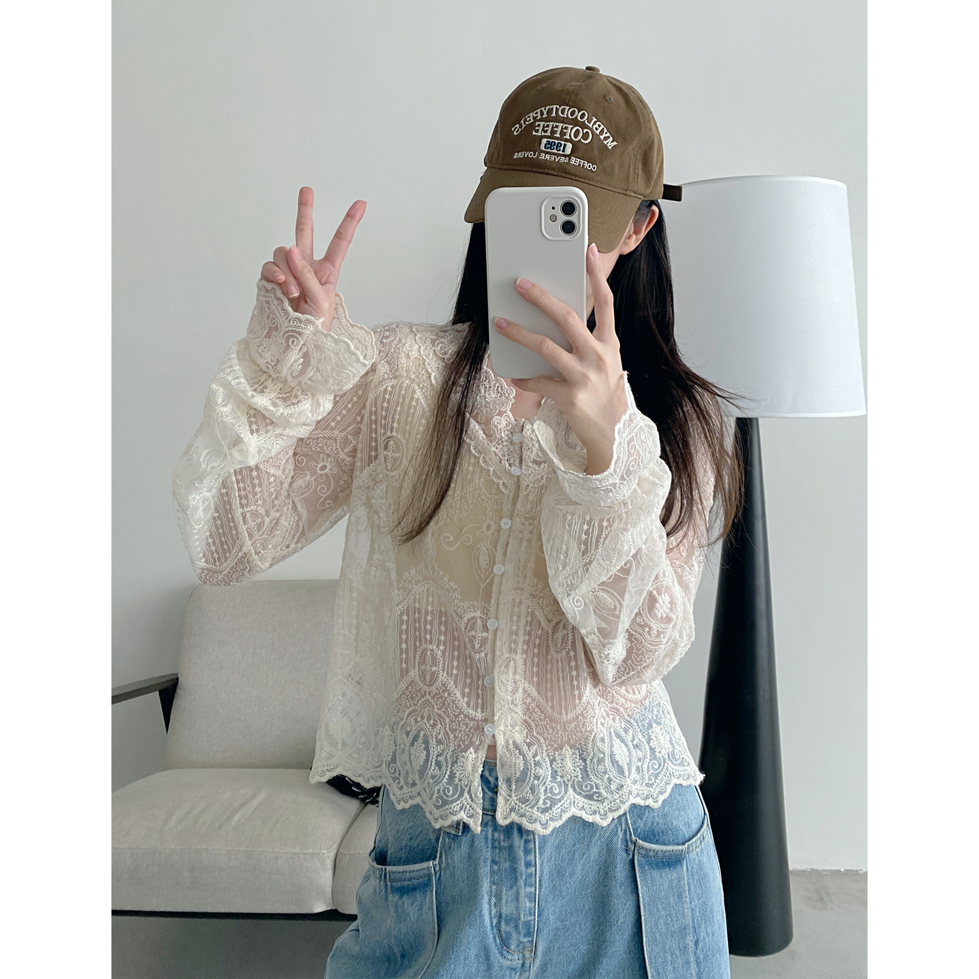 sun柚 蕾丝打底衫女春夏外穿内搭V领镂空小衫长袖高级感防晒上衣