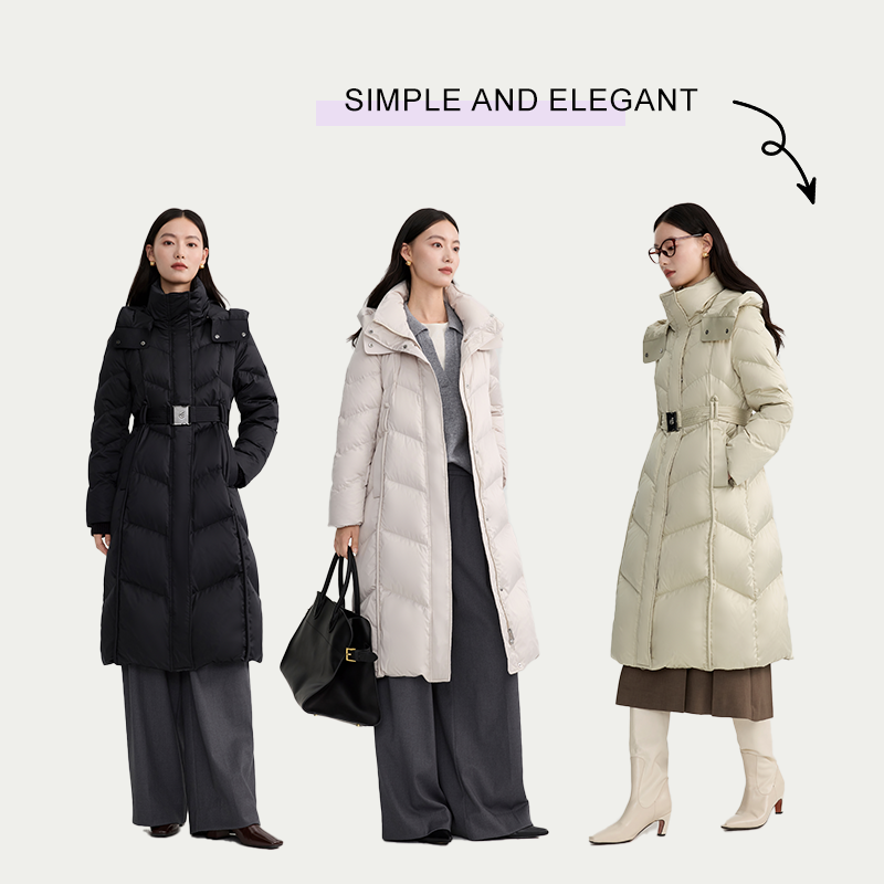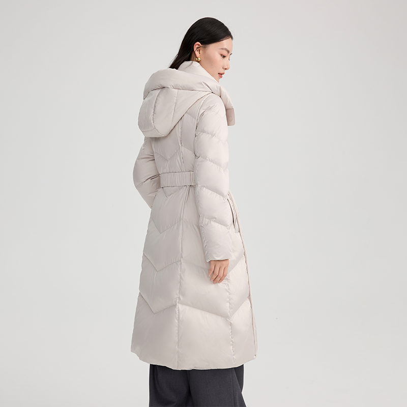 【胡可推荐】艾莱依冬季羽绒服女款长款连帽气质大衣收腰休闲外套