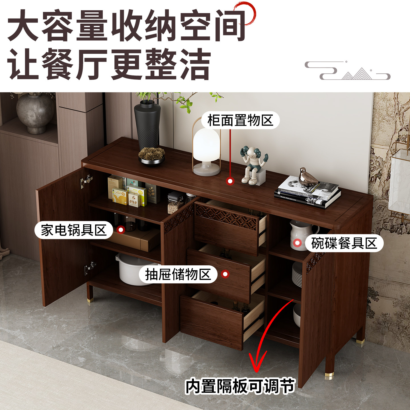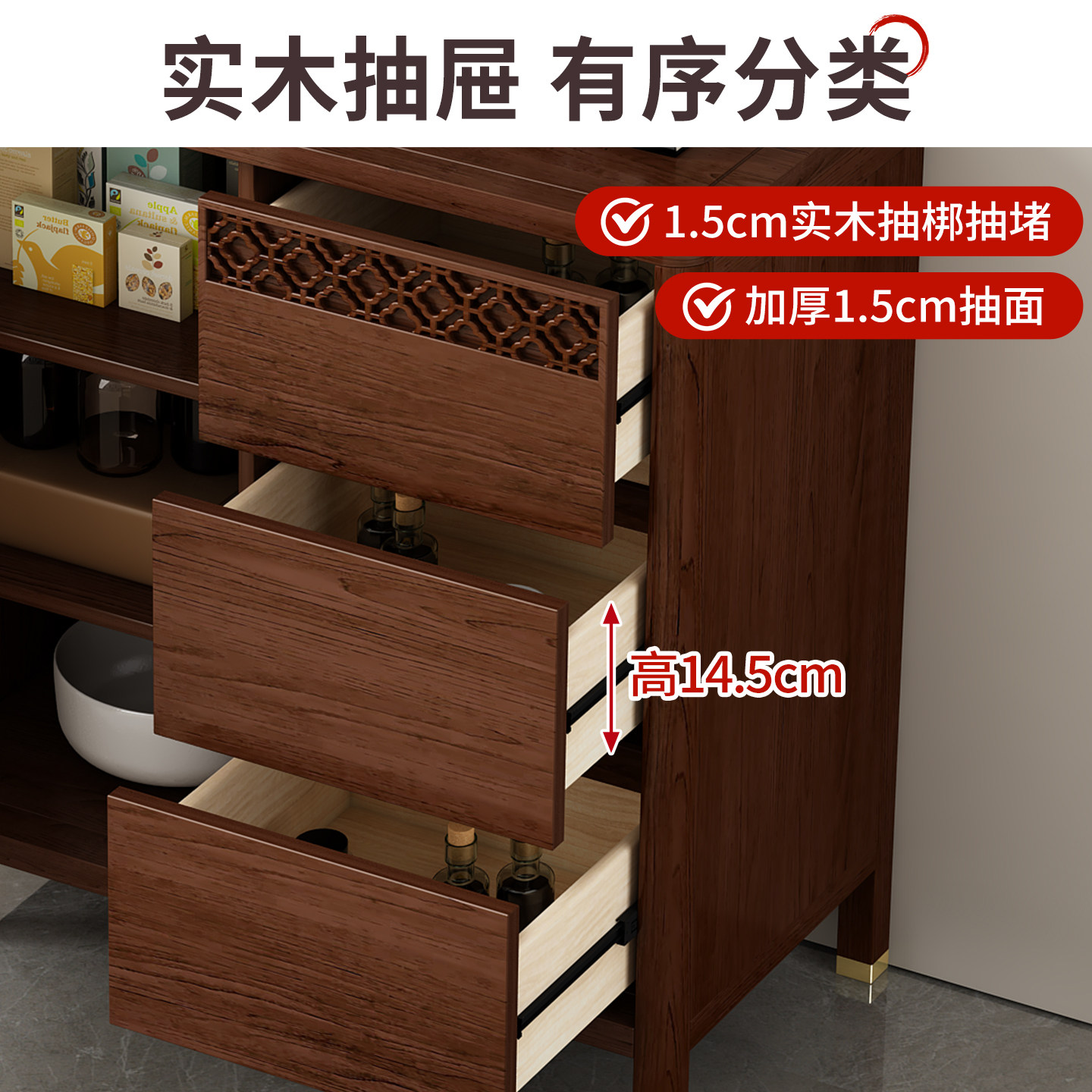 全实木餐边柜酒柜客厅靠墙储物柜家用一体茶水柜厨房碗柜子胡桃色