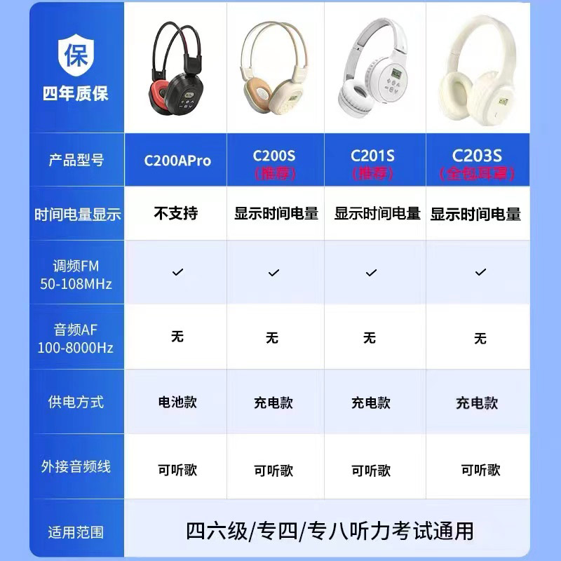艾本四六级耳机大学英语四级六级专八AB级考试专用调频FM听力耳机