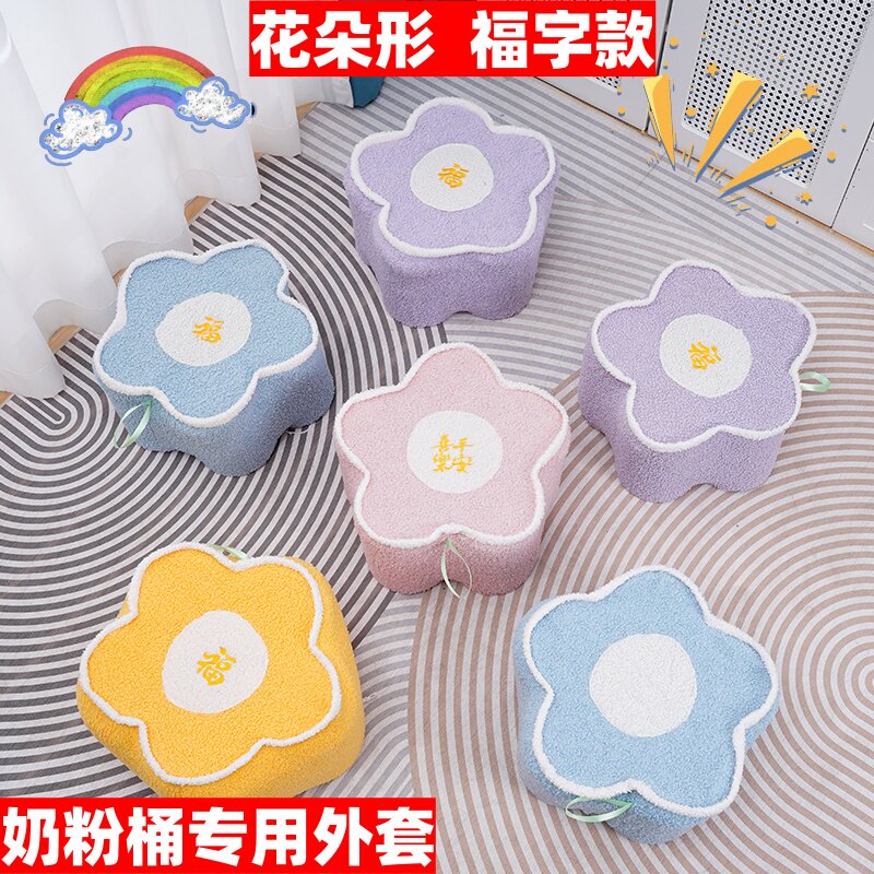 奶粉罐自制凳子套罩花朵改造布套diy材料免缝成品花瓣创意可拆洗