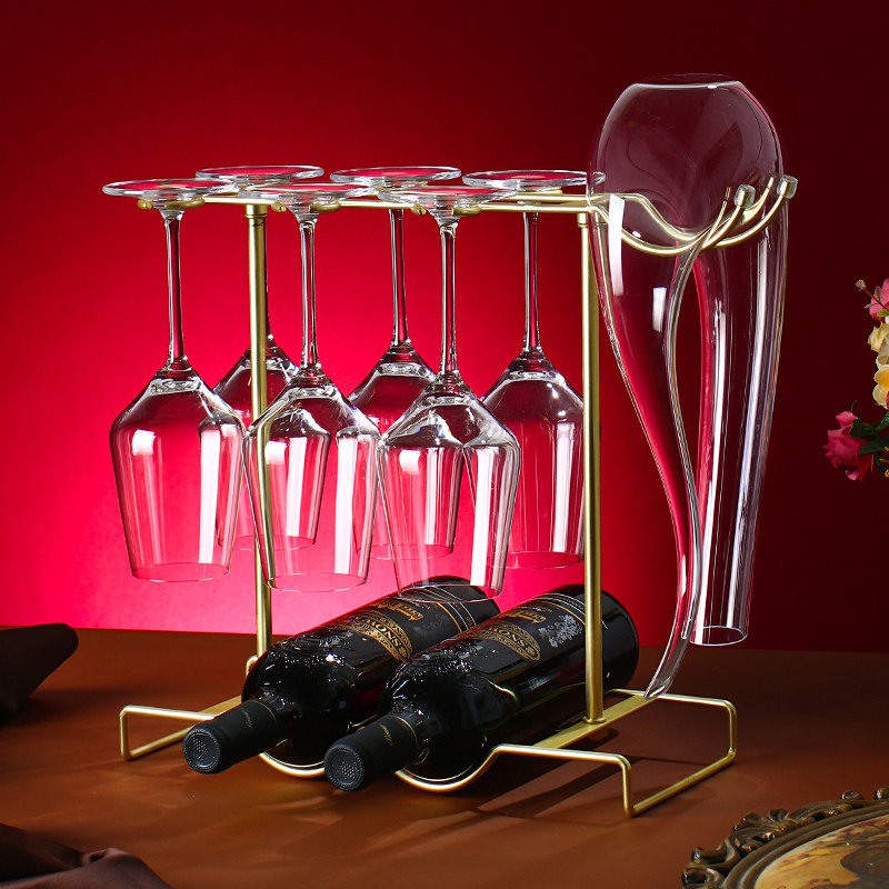 红酒杯套装家用水晶玻璃高脚杯葡萄红酒杯架子醒酒器酒具奢华高档