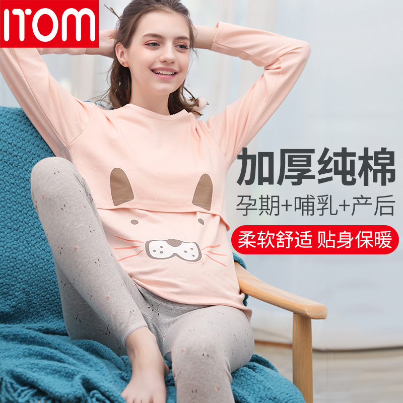 孕妇秋衣秋裤套装纯棉怀孕期秋冬款睡衣月子服产后哺乳保暖内衣