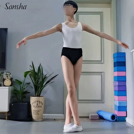 sansha三沙男童芭蕾舞体服拼色连体服男成人练功舞蹈服艺考体操服