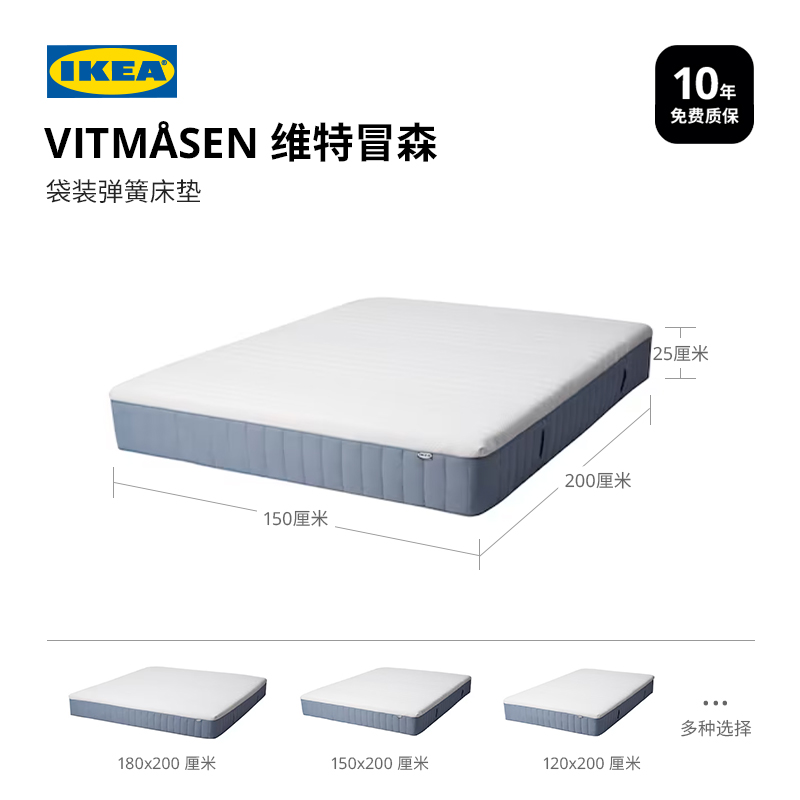 IKEA宜家维特冒森天然乳胶层独立袋装弹簧床垫加硬型卧室家用